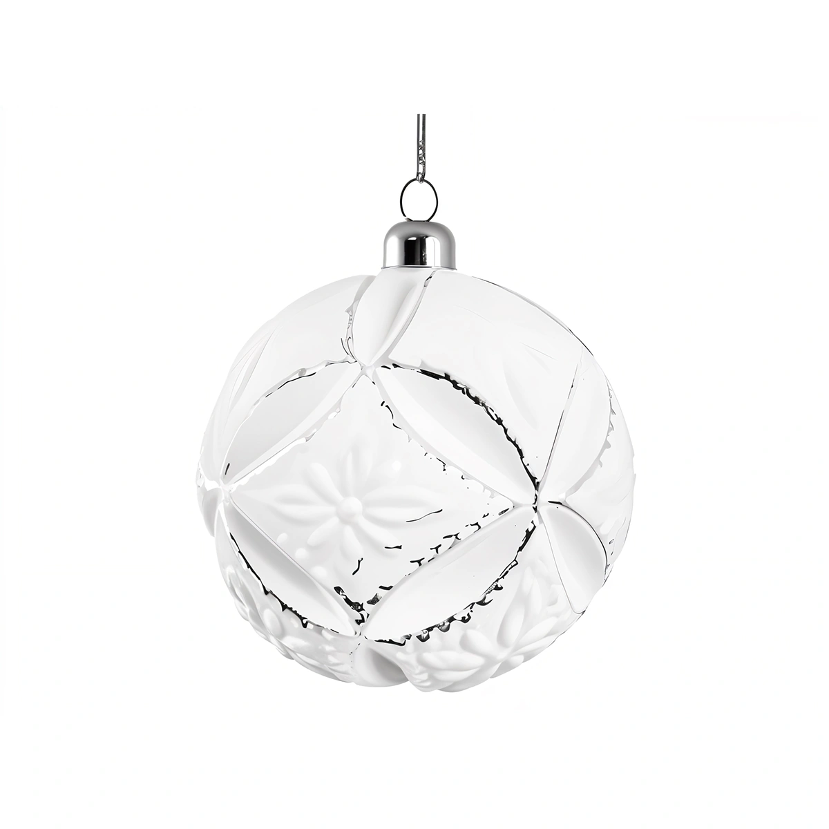 White Glass Floral Ball Ornament - Medium Size
