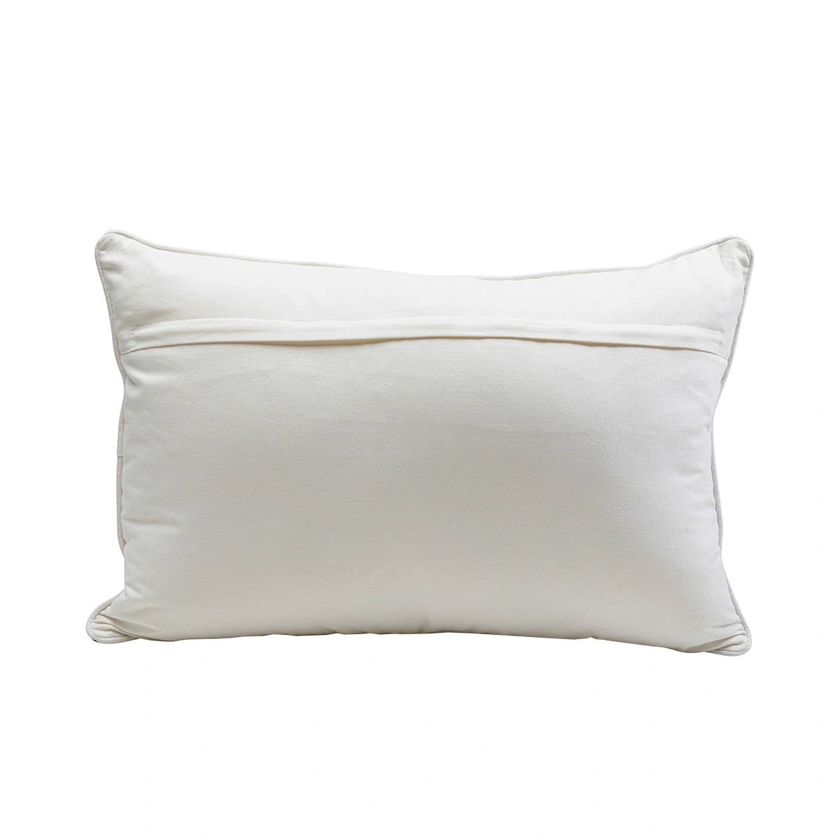 Key features of this cushion include its dimensions of 60 cm length, 14 cm width, and 40 cm height, making it the perfect size for layering. The cover is made from 100% cotton, offering a soft and smooth texture. The filler, made from 100% polyester, ensures it retains its shape over time.