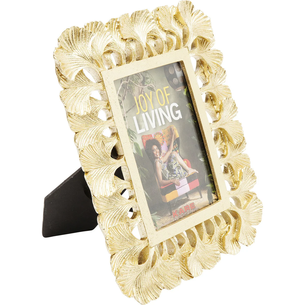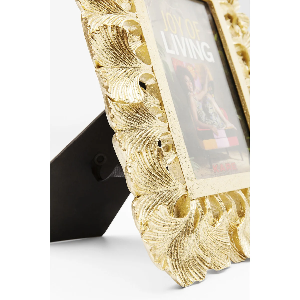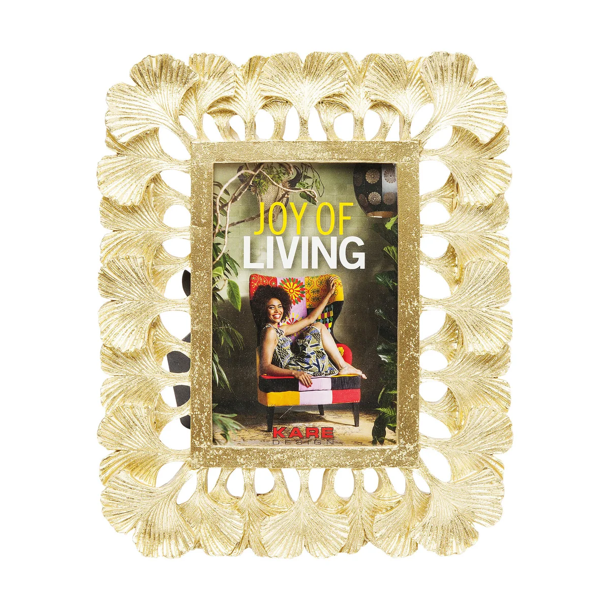 This picture frame in elegant gold sets brilliant accents with its unique border of stylized ginkgo leaves. The symbol of the ginkgo, which stands for friendship, love and longevity, lends special meaning to memories. Ideal for presenting art prints or personal photos in an elegant frame. It blends perfectly into both modern and classic interiors and adds a touch of luxury and warmth to any room.
