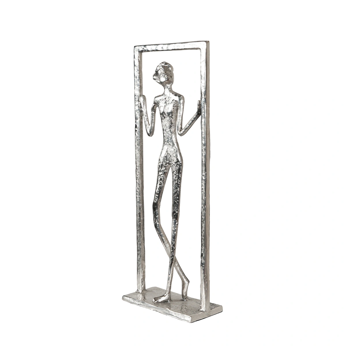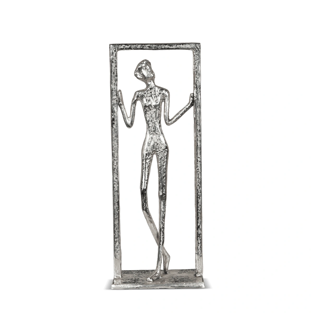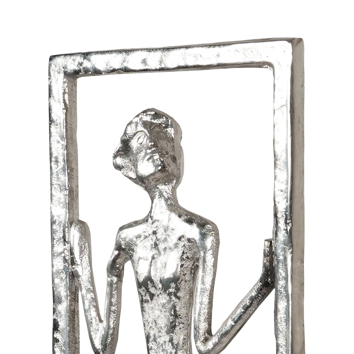 The Frame Man XL Sculpture in Raw Silver is a captivating piece that brings creativity to any space. Perfectly sized for entryways or display shelves, it's an artistic statement that's hard to ignore.