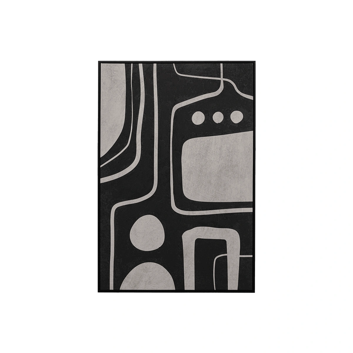 • The slim black frame emphasises the modern character of the abstract picture on canvas