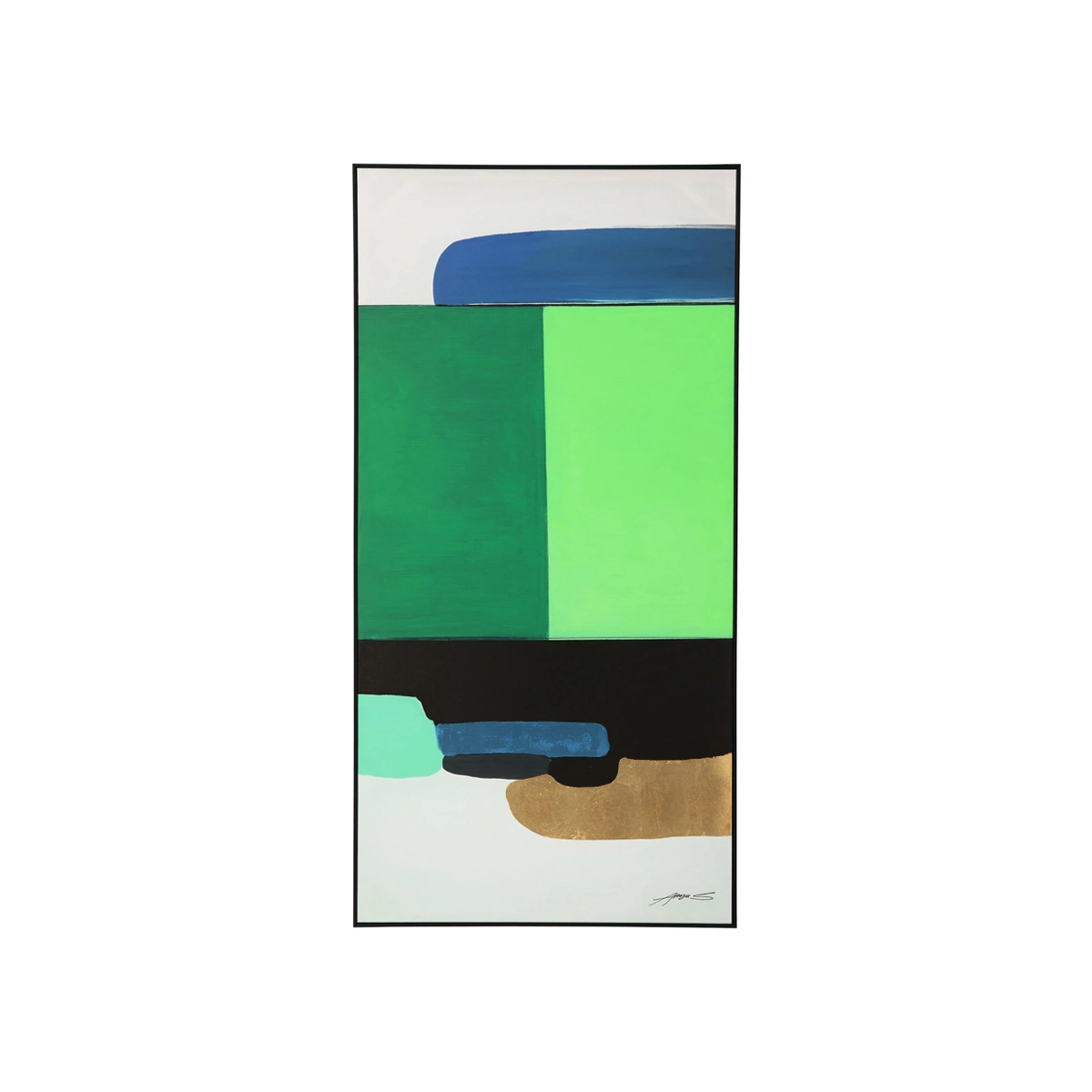 • Abstract painting for the wall in green and blue, measuring 143 x 73 x 4.5 centimetres (H/W/D)