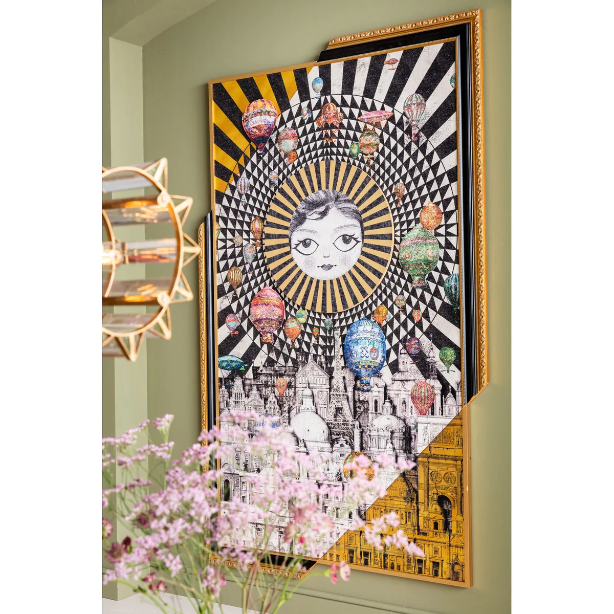 This picture, measuring 160 cm by 260 cm, features a lively balloon design on high-quality Paper Art, framed for durability and aesthetic appeal. The multicolor scheme is ideal for brightening up a room and matching any decor style.