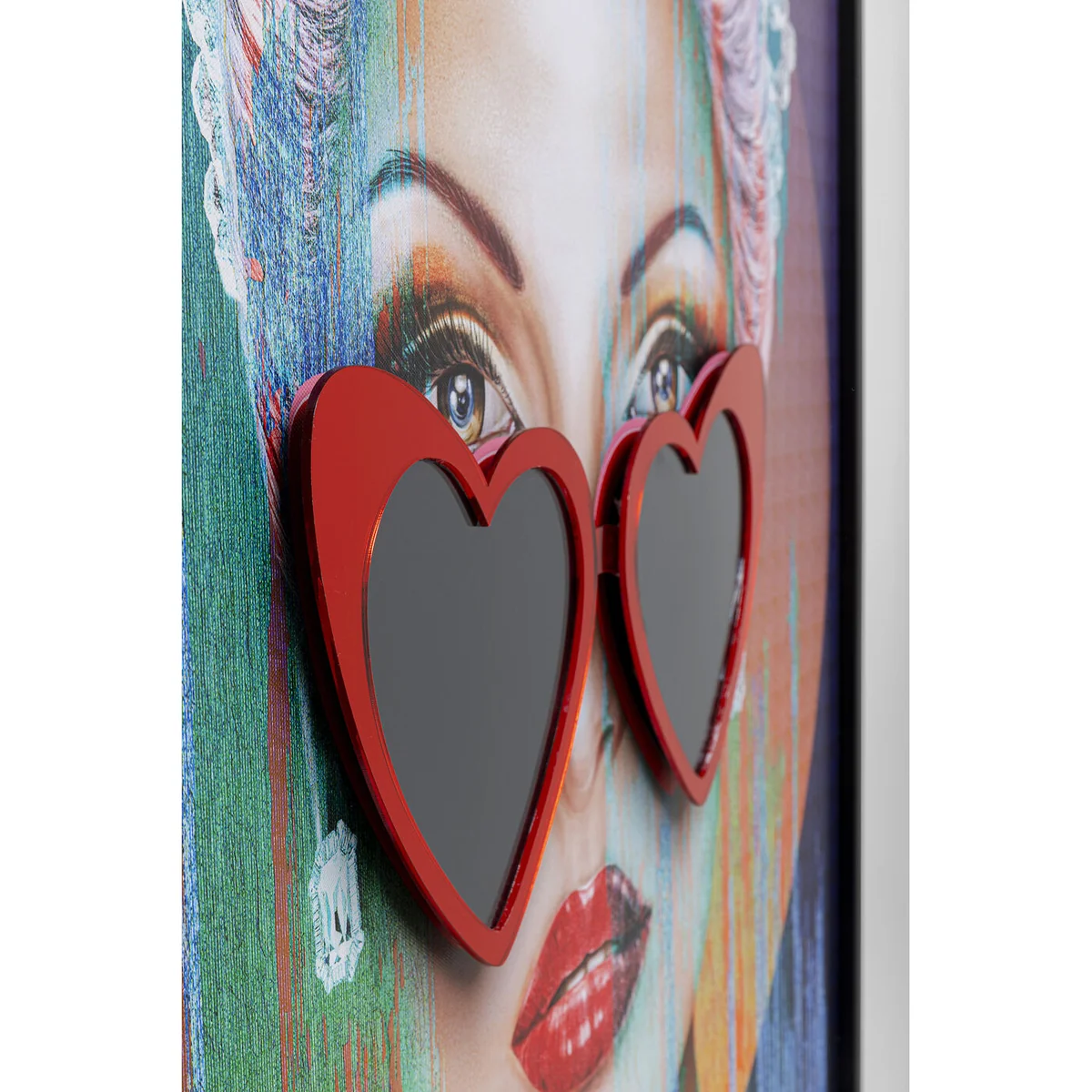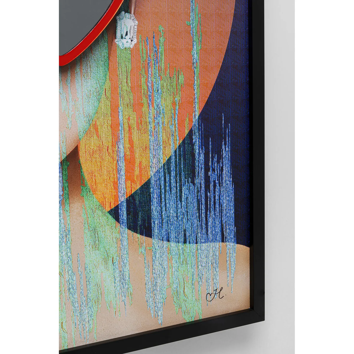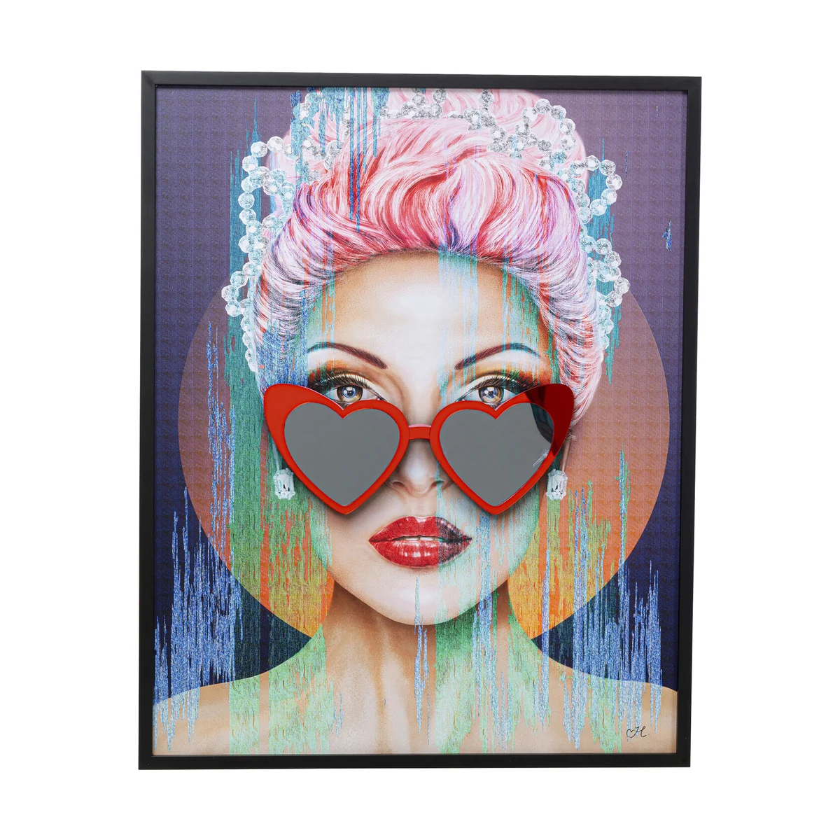 - Colourful picture on canvas with a portrait and sunglasses attached in the truest sense of the word - High-quality, black frame made of lacquered wood for a classy look - Large formats are ideal above sideboards, chests of drawers and the sofa - Modern and creative as a wall decoration in any style of home - Fitted picture hooks on the frame make wall mounting very easy for you