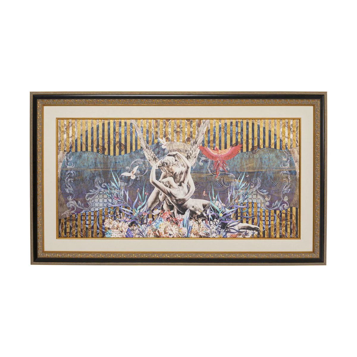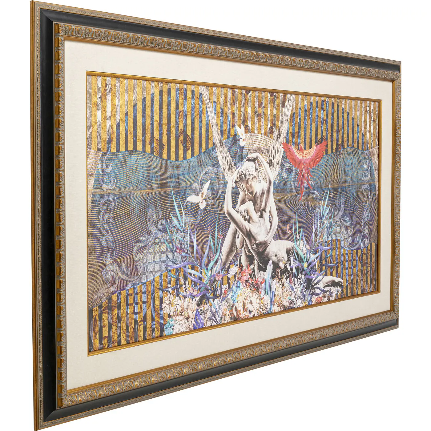 Sometimes more is simply more. The picture adds opulence to the room. This is not only due to its dimensions. The lush motif with Greek sculptures and exotic flora and fauna revels in ornamental decoration and colours. The picture print is rounded off by a luxuriously crafted frame. Give this framed picture space to work, for example above the large living room landscape, in the open living and dining area or on the landing.
