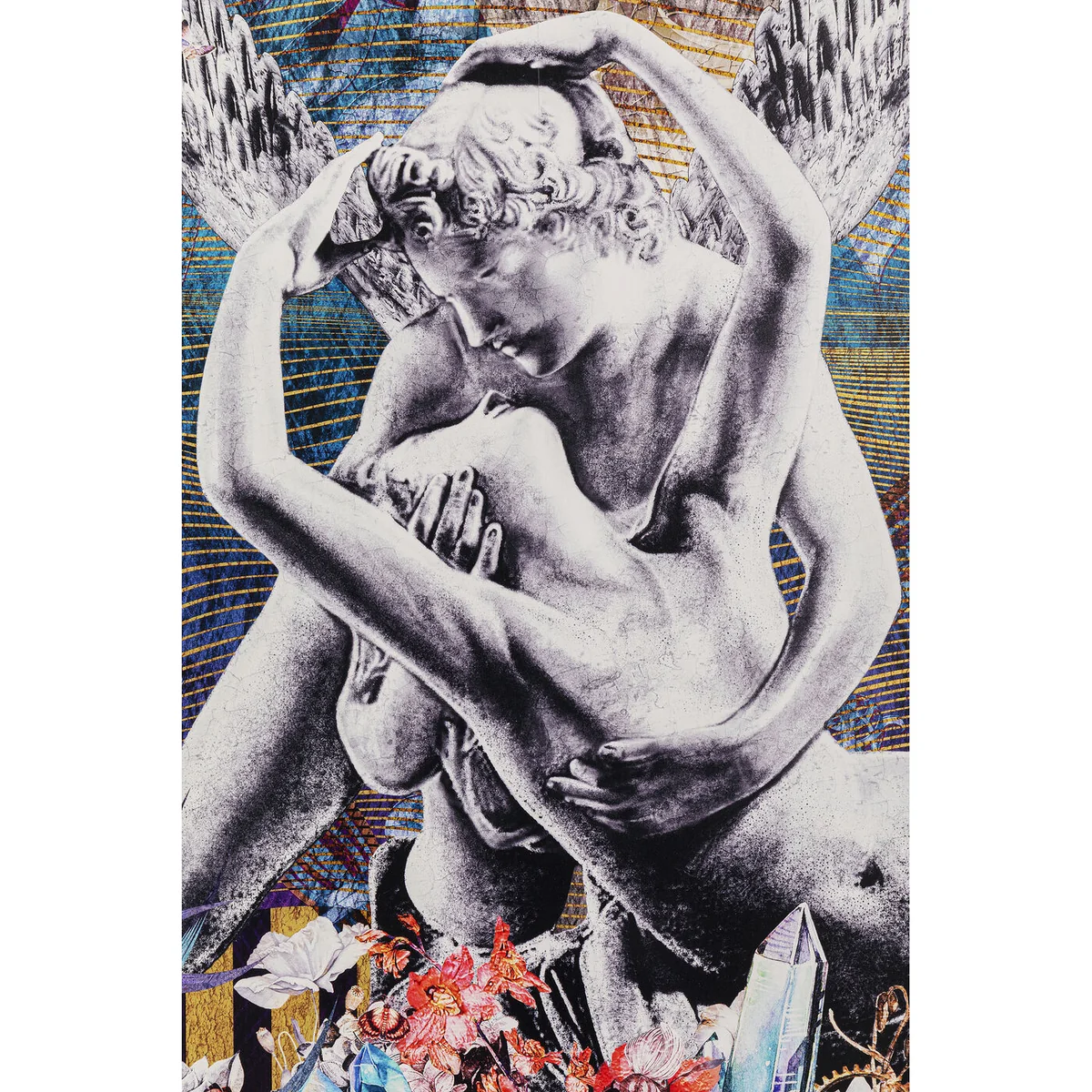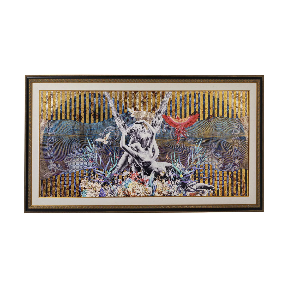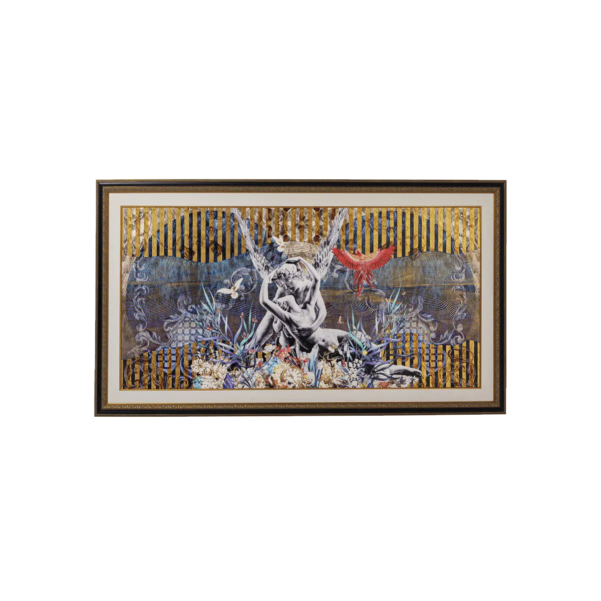 Pictures on the wall are a personal style statement and complete the look of a room, whether it's the study, the living room or the bedroom. This large and intricately framed picture print plays with its fabulous motifs and provides a talking point when guests arrive. The framed picture is an investment in your art gallery at home and celebrates love with a couple as the focal point.