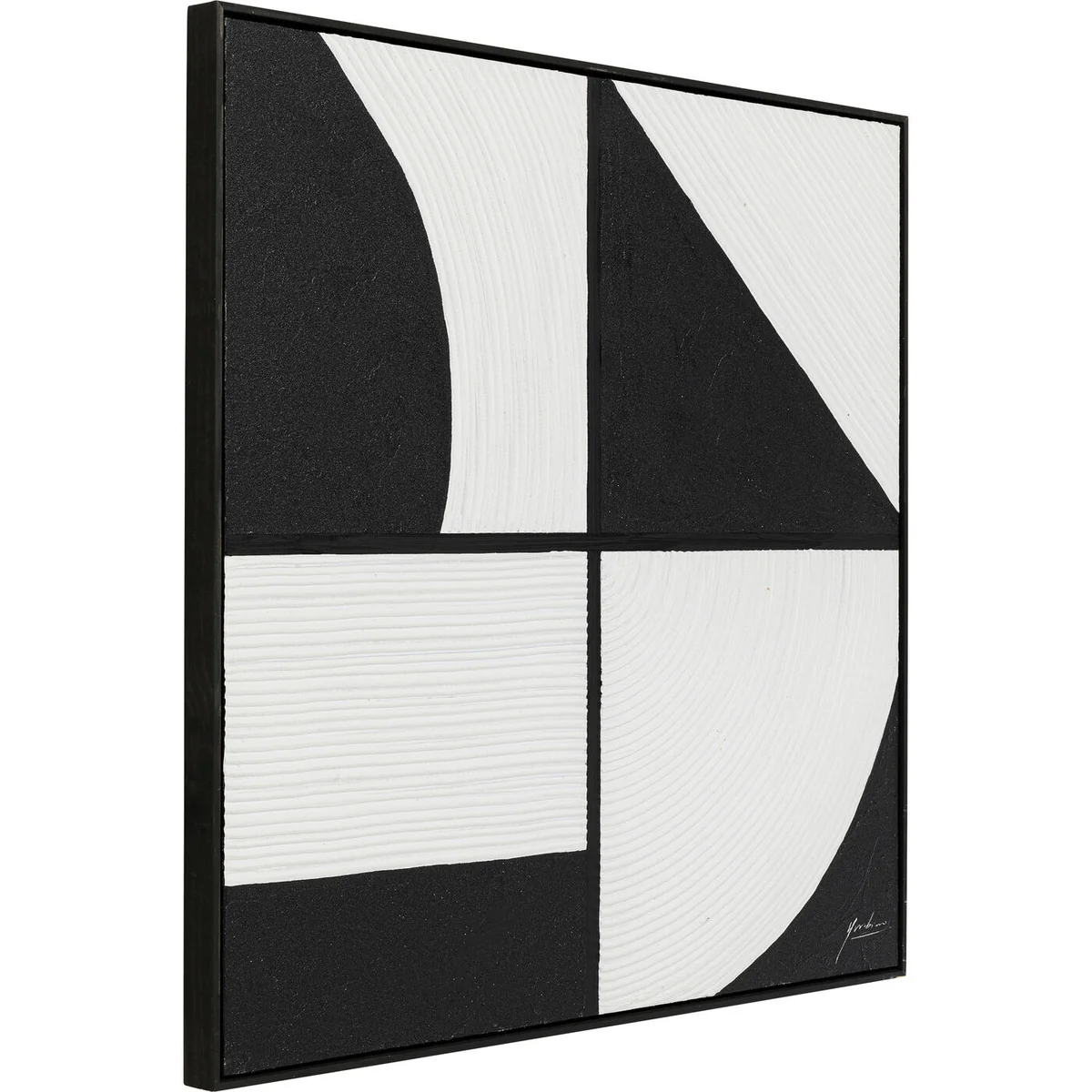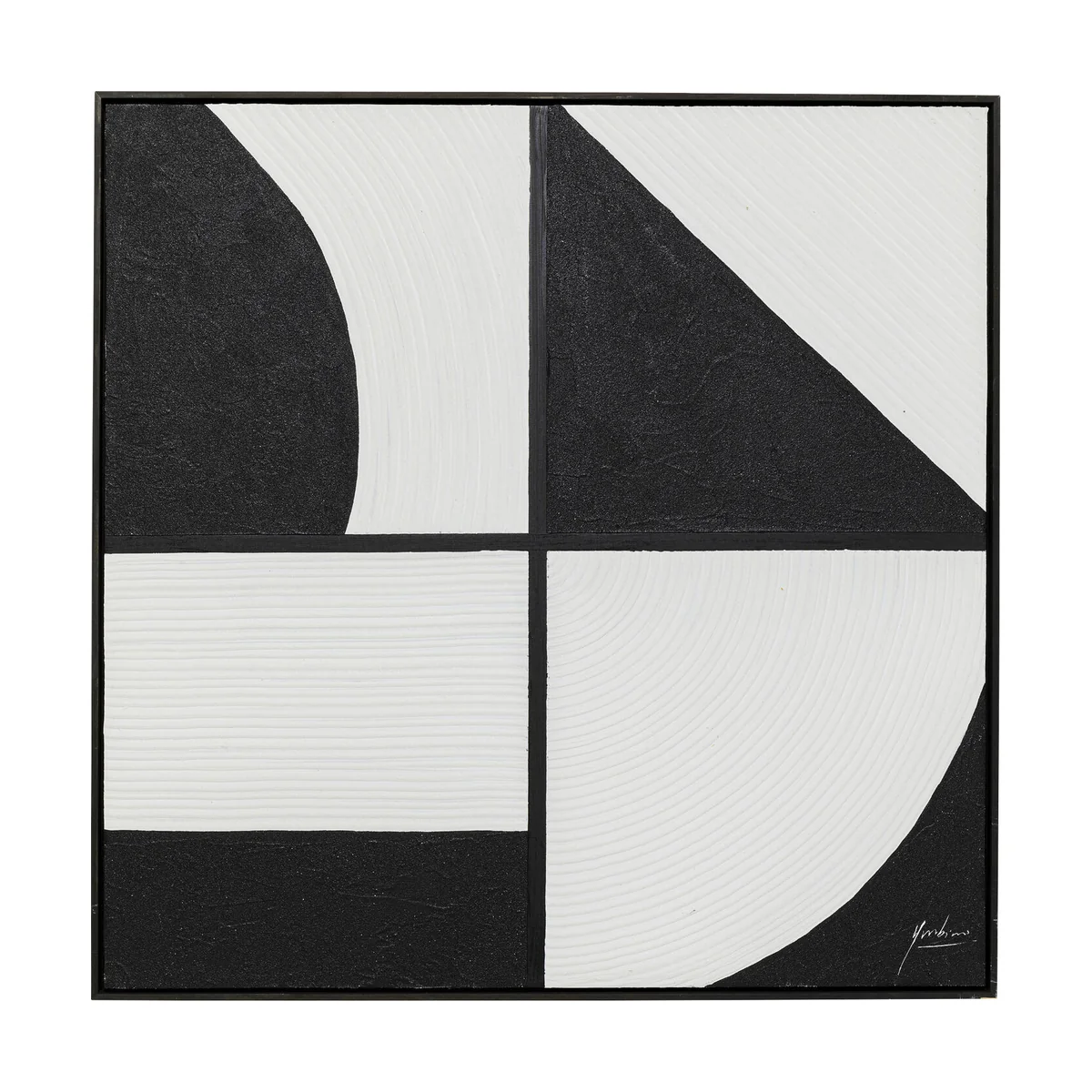 - Black and white picture on canvas in a square format, 100 x 100 x 2.8 cm (H/W/D) - Each acrylic picture is a high-quality, hand-painted one of a kind - The craftsmanship is easy to recognise from the fine structures in the application of the paint - Graphic patterns make this abstract painting for the wall a modern decoration in the living room and bedroom - In artistic quality: canvas made of cotton and frame of solid pine