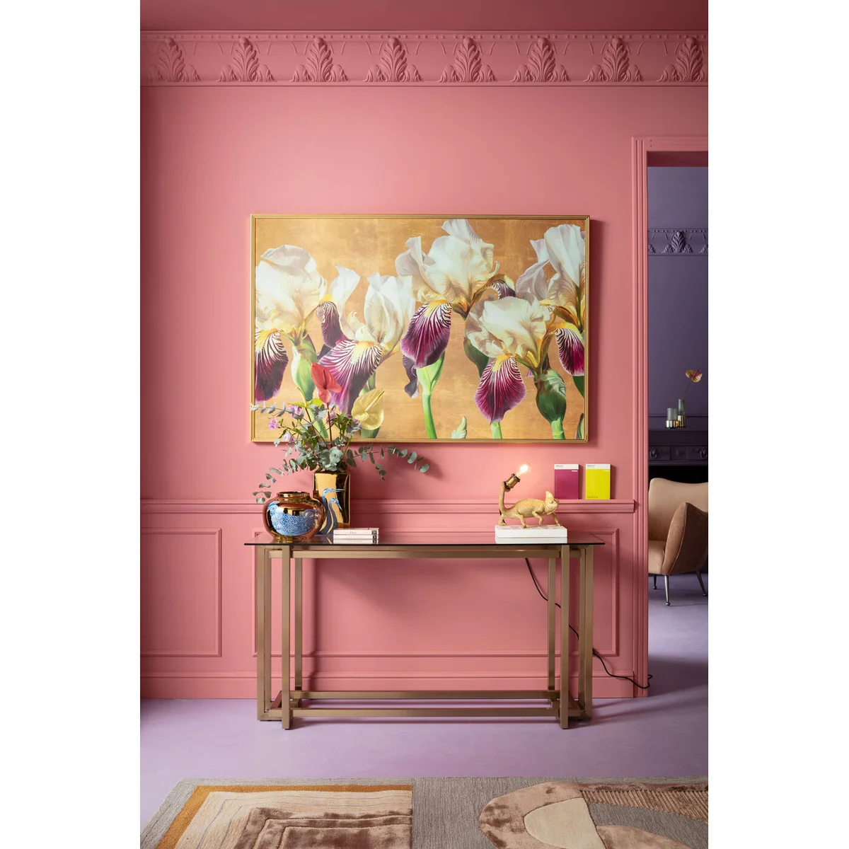 - Large, framed art print in the style of a classic painting, approx. 153 cm wide - Pictures for the wall in landscape format are perfect above wide sofas, beds and sideboards - Can be combined with many furnishing styles - from country house via classic to modern - A narrow, simple frame in the colour gold adds modernity to the flower motif - Immediately ready to hang, picture hooks already mounted