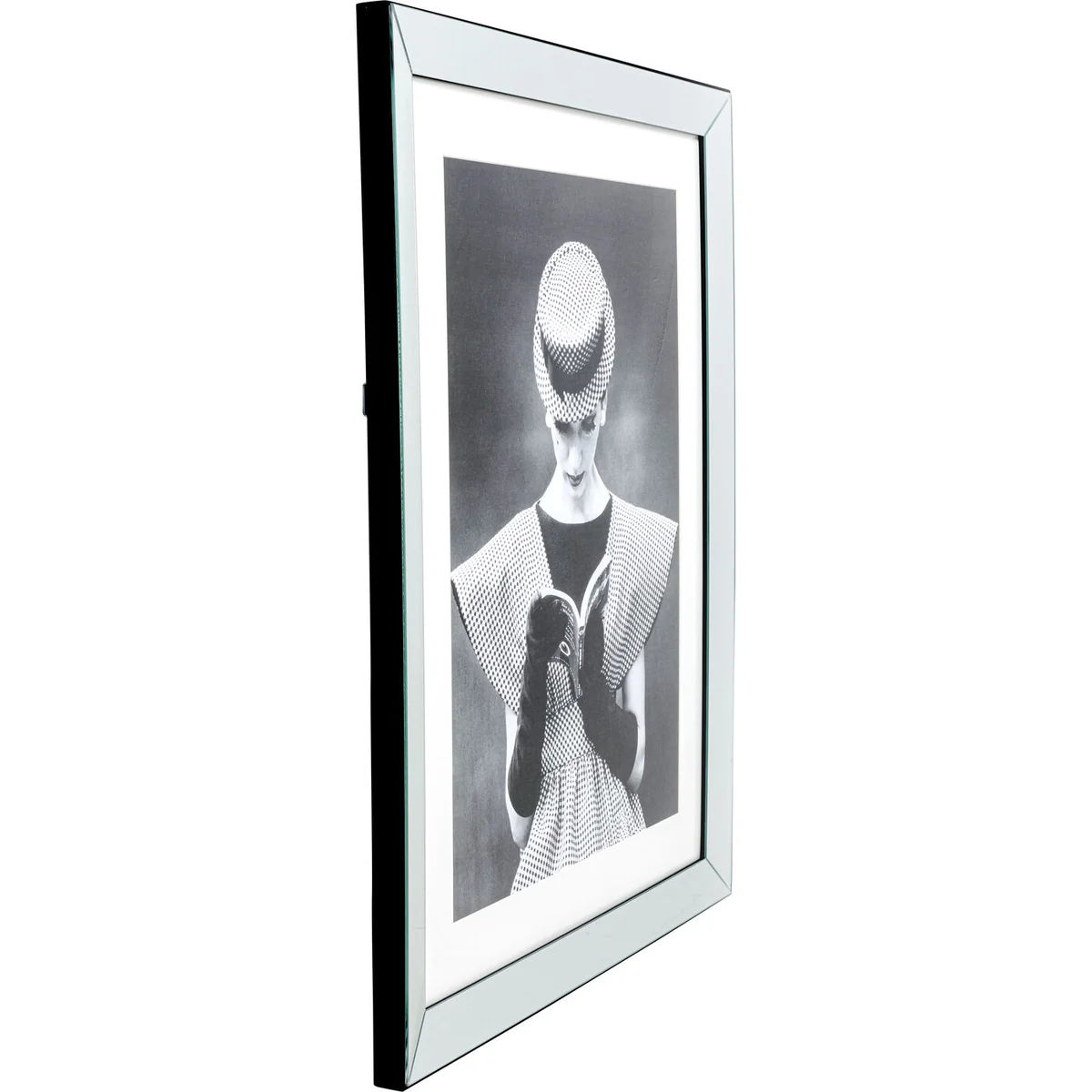 - Retro art print: a fashion motif with white passe-partout - Luxury frame: mirrored with a deep, black-framed gallery frame - Photo art in black and white: framed pictures with photos add elegance to every living room - Idea for a picture wall: hang several pictures in black and white as a group - Easy to hang: the hooks for hanging are already mounted on the back