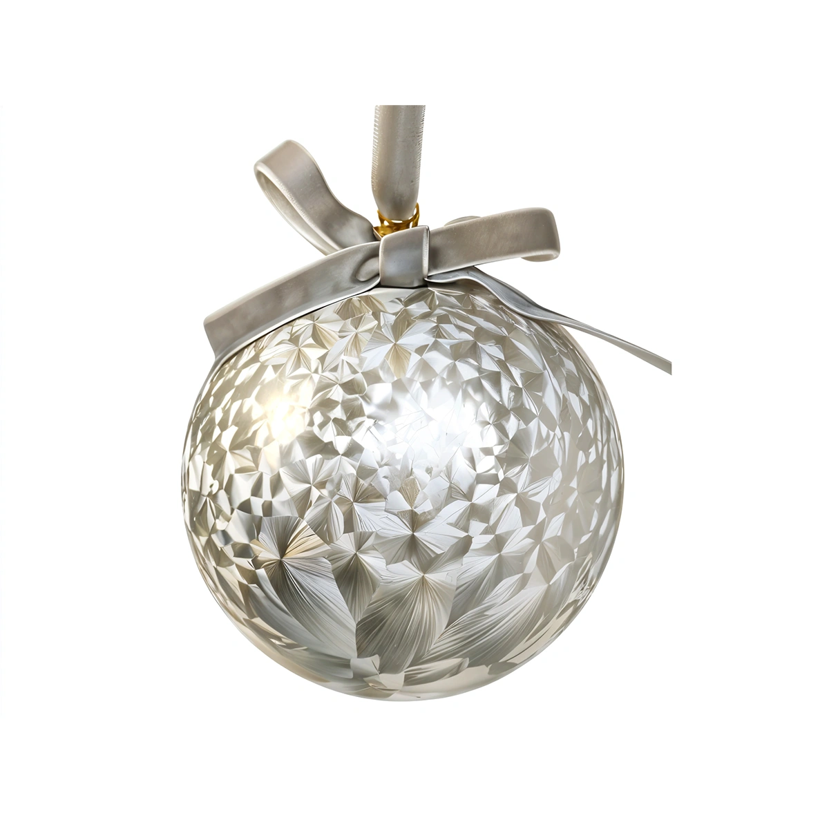 The ornament flaunts a gentle beige hue and velvety finish, wrapped snugly with a delicate bow. It measures 10cm, making it an ideal size to stand out yet harmoniously blend in with your holiday decorations. Made from durable plastic, this ornament is designed to last season after season.