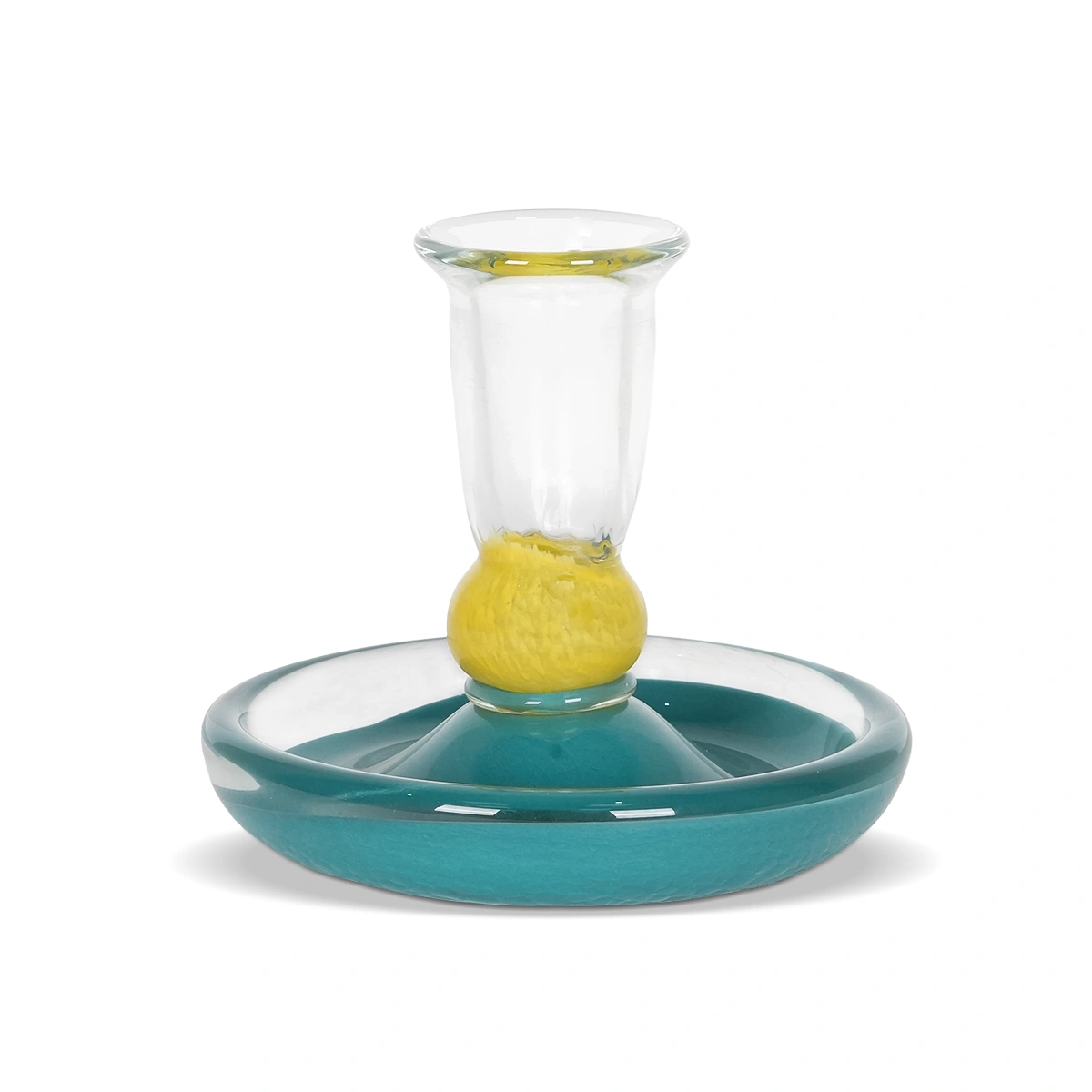 Illuminate your space with the soothing ambiance of the Gaily Small Candle Holder in Green Glass. This elegant piece adds a touch of nature-inspired charm to any room.