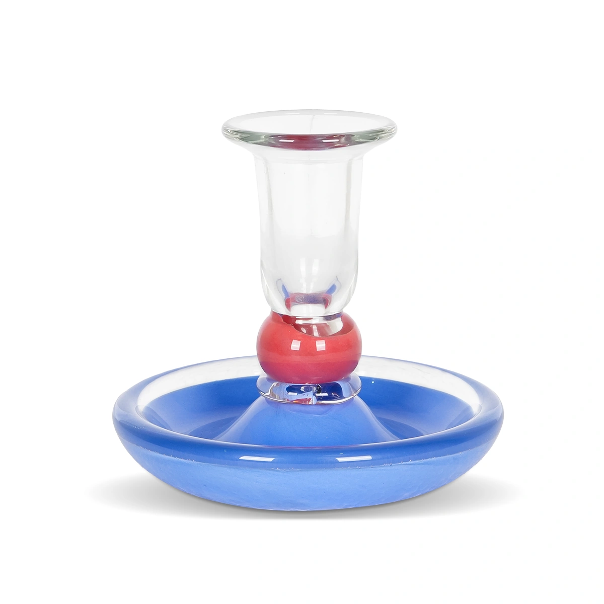 The Gaily Candle Holder in Multicolored features a vibrant glass design that reflects light beautifully. Its playful mix of colors makes it a lively addition to your décor.