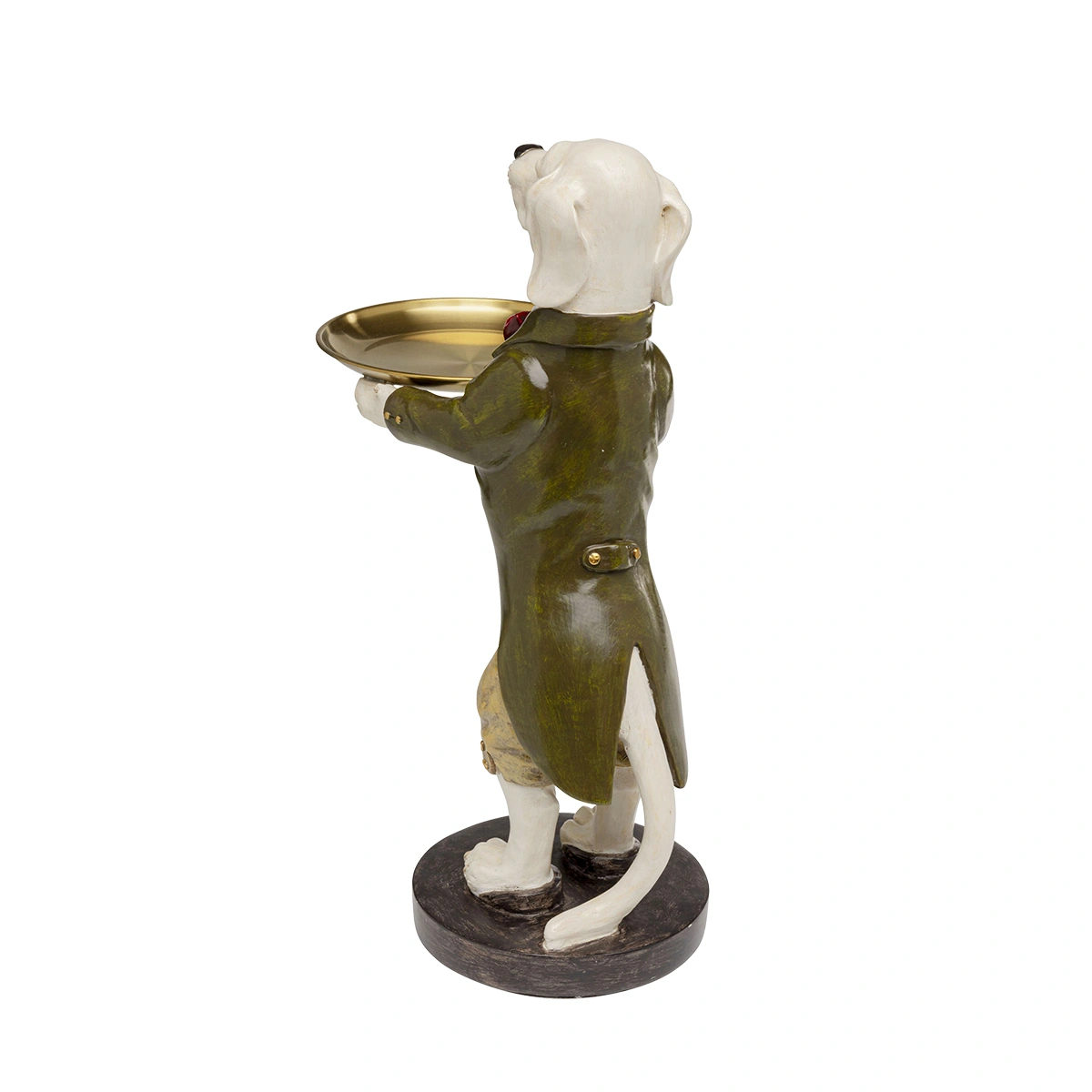 Key features of this figurine include its impressive size of 43 x 28.5 x 17.5 centimeters (H/W/D), and its ability to hold keys, jewelry, or small accessories on its tray. The classic colors are accentuated with golden details, and the figure is handcrafted from easy-care, dimensionally stable polyresin.