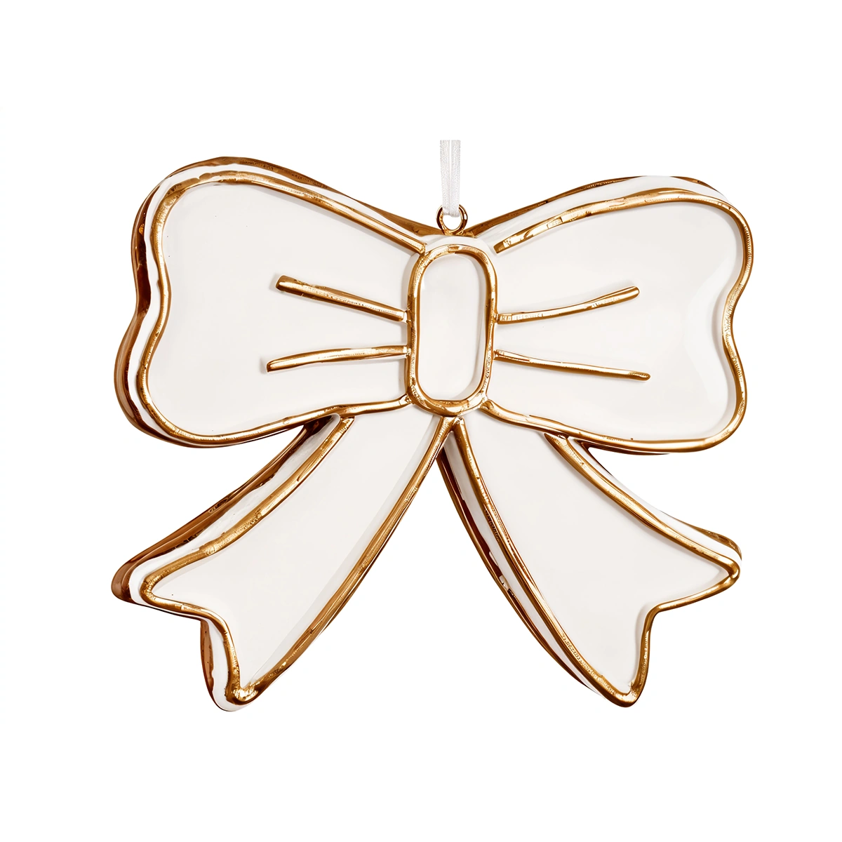 White Gingerbread Bow Ornament (Small) – Clay Polyester, 8.5cm