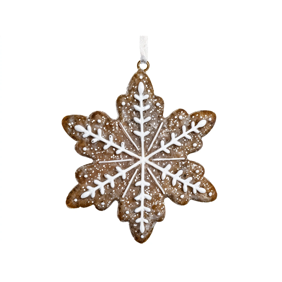 Small Gingerbread Snowflake Ornament in Brown Polyresin