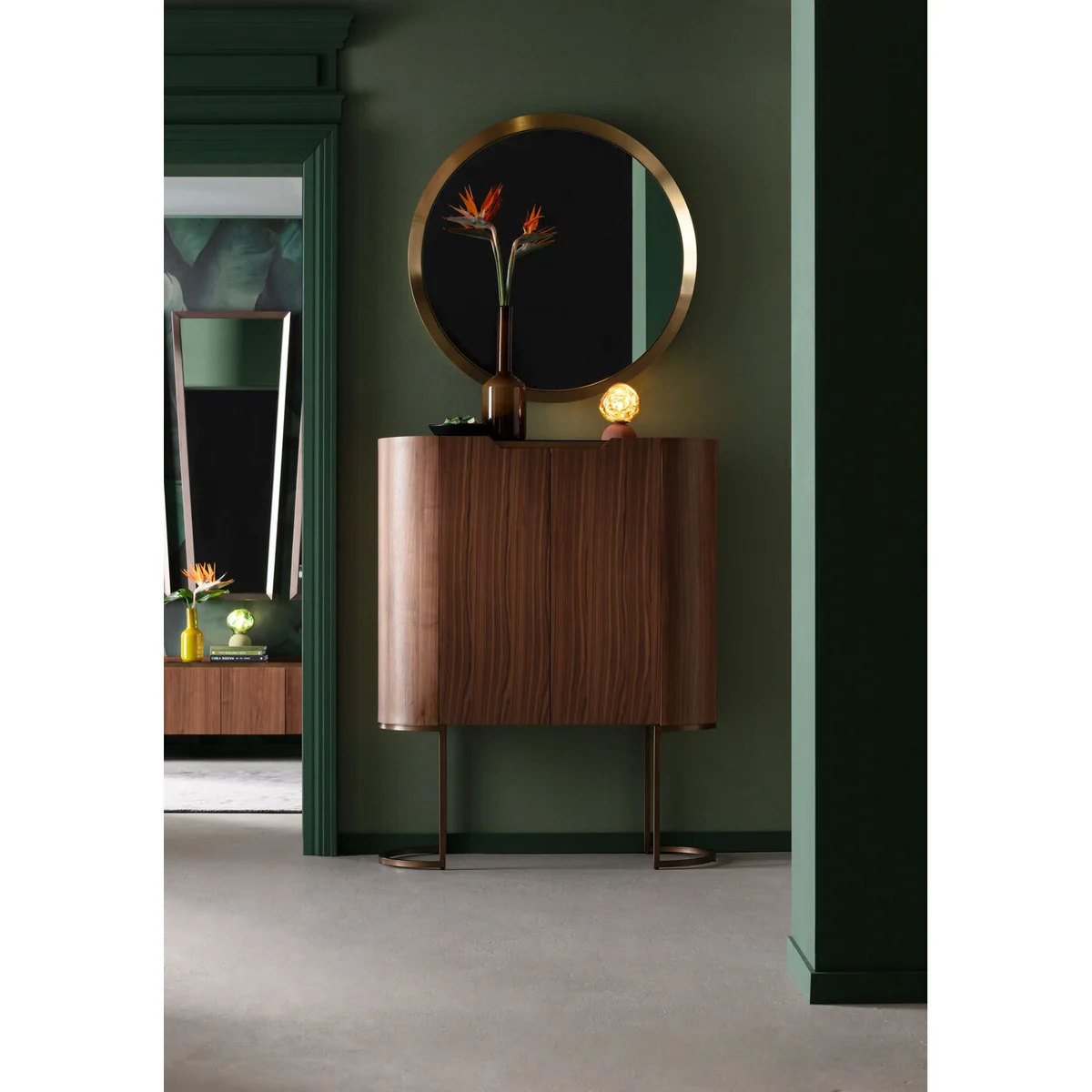 | Material: | Corpus and fronts: Walnut Medium density fibreboard (MDF) Lacquered, Back panel: Medium density fibreboard (MDF) Lacquered, Foot/Base: Stainless steel lacquered, Shelf: Chipboard Lacquered, Shelf: 2 Stück Medium density fibreboard (MDF) Lacquered, Handles: Stainless steel lacquered, Paneling: Glass Colored Lacquered, Door: 2 Stück Walnut Medium density fibreboard (MDF) Lacquered |