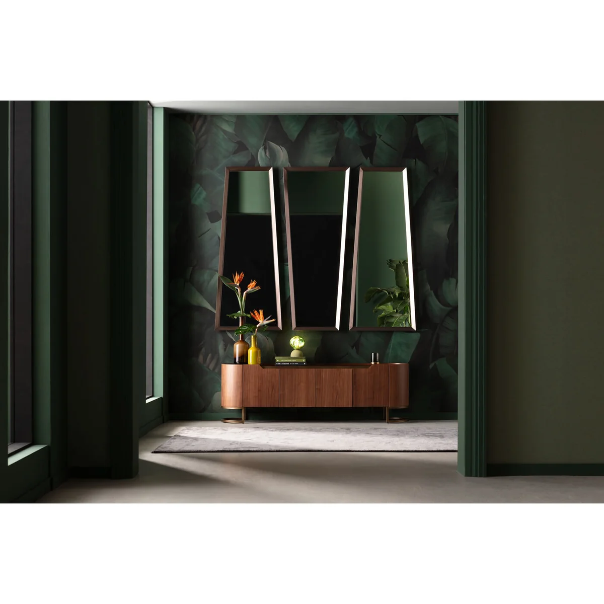 | Material: | Corpus and fronts: Walnut Medium density fibreboard (MDF) Lacquered, Back panel: Medium density fibreboard (MDF) Lacquered, Cover plate: Glass Colored, Foot/Base: Stainless steel lacquered, Drawer front: 2 Stück Walnut Medium density fibreboard (MDF) Lacquered, Shelf: Medium density fibreboard (MDF) Lacquered, Chipboard Lacquered, Door: 2 Stück Medium density fibreboard (MDF) Lacquered, Frame: Stainless steel lacquered |