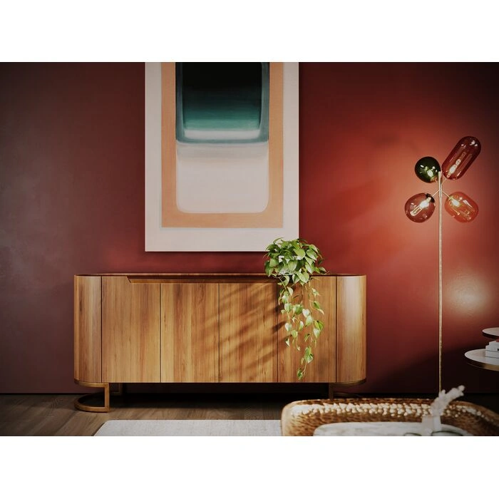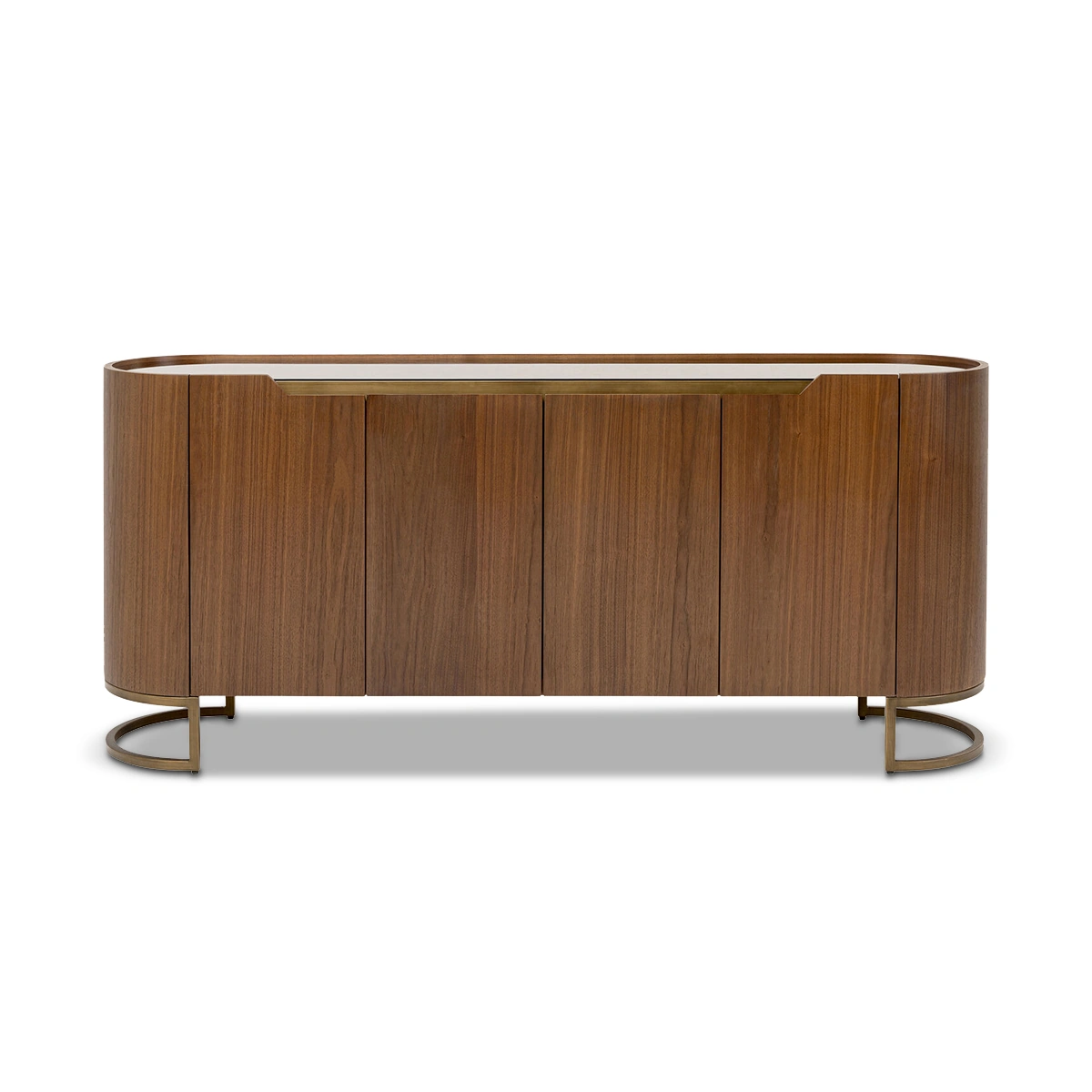 The furniture from the Giorgio collection skilfully combines sophisticated design and homely elegance. Expressive wood meets elegant glass accents, lending depth and a touch of glamour to the overall look. Rounded lines and delicate metal feet create a modern lightness that still exudes down-to-earth charm. This sideboard offers generous storage space behind a stylish façade – perfect for crockery, books, or everyday accessories. The surface is ideal for decorative arrangements with vases, lamps, or personal favorite items. Inside, the collection scores with plenty of space for favorite items and everyday helpers – outside with a look that leaves a lasting impression. Ideal for stylish living concepts that value character, comfort, and quality.