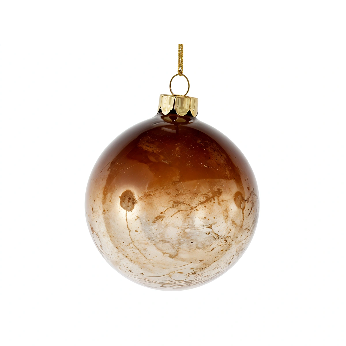 Key features of the ornament include a 10CM size, made of durable and high-quality glass, and designed with a snowy effect for an enchanting winter feel. The clear brown color adds a sophisticated and earthy touch, making it a versatile addition to any holiday decor.