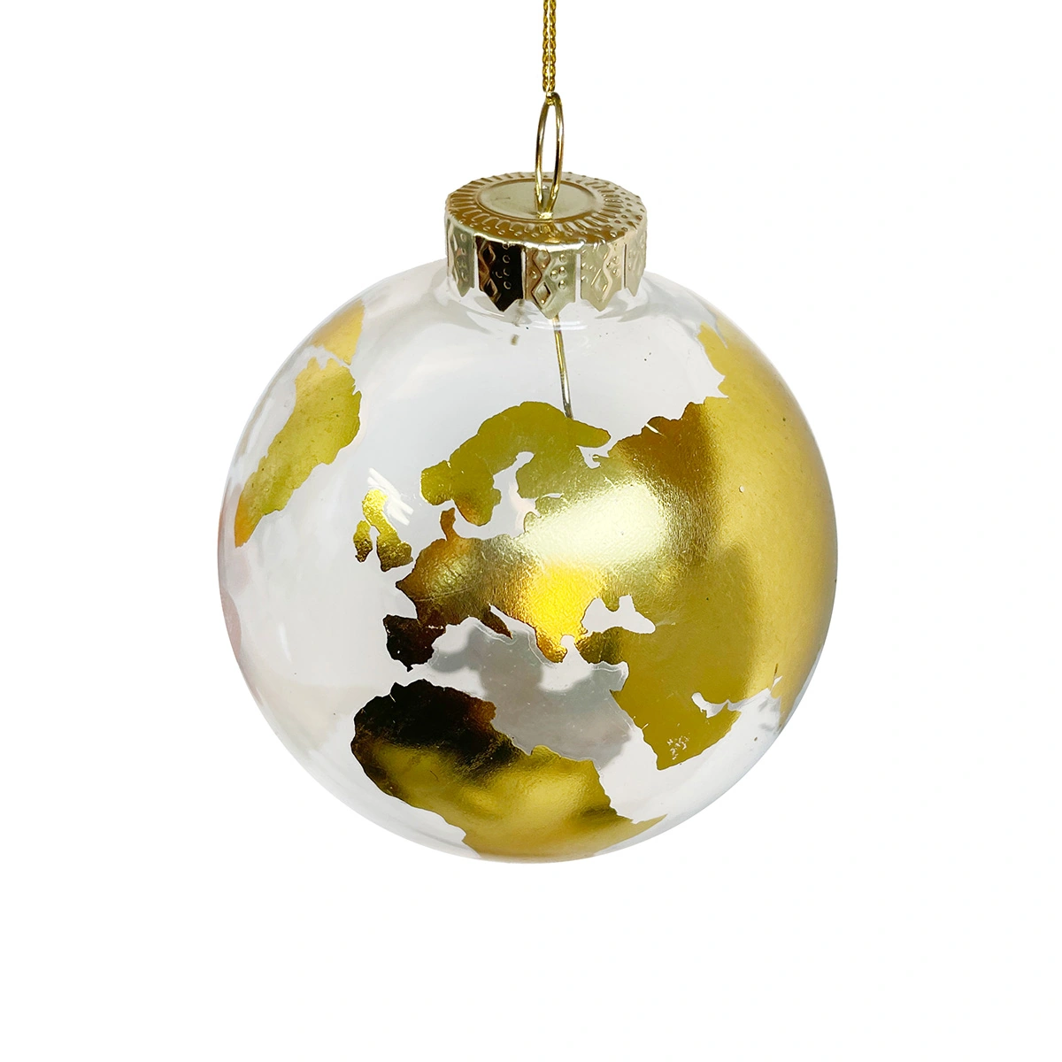 Glass Ball Clear With Gold Globe Pattern, 8 CM