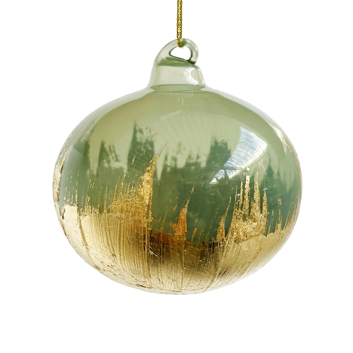Glass Ball Onion Shape Green With Gold Leaf, 8 CM