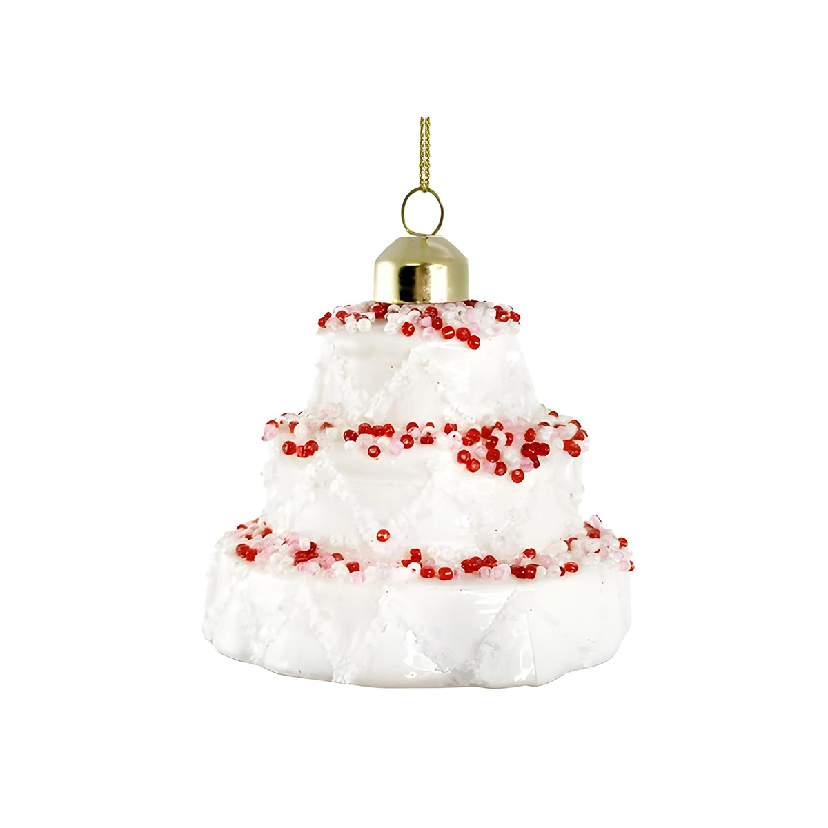 Designed with intricate details, the ornament is 8.5CM in size and made from high-quality glass. It features a delicate white hue that can match any decor style and theme. Its realistic cake design adds a fun yet sophisticated charm to any setting.