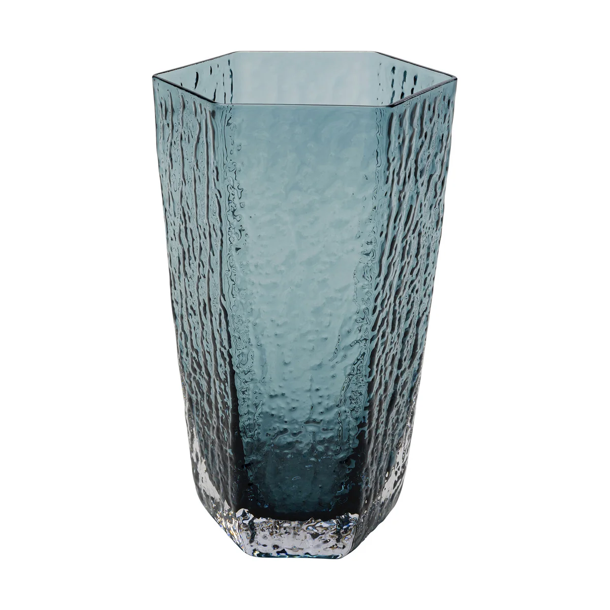 This modern water glass in stylish blue will bring a breath of fresh air to any dining table. The distinctive, textured surface not only gives it a sophisticated look, but also makes it pleasant to touch. Whether it's water, juice or a sparkling cocktail, this glass presents every refreshing drink in style. Combined with simple plates or colourful napkins, it creates a modern table setting.