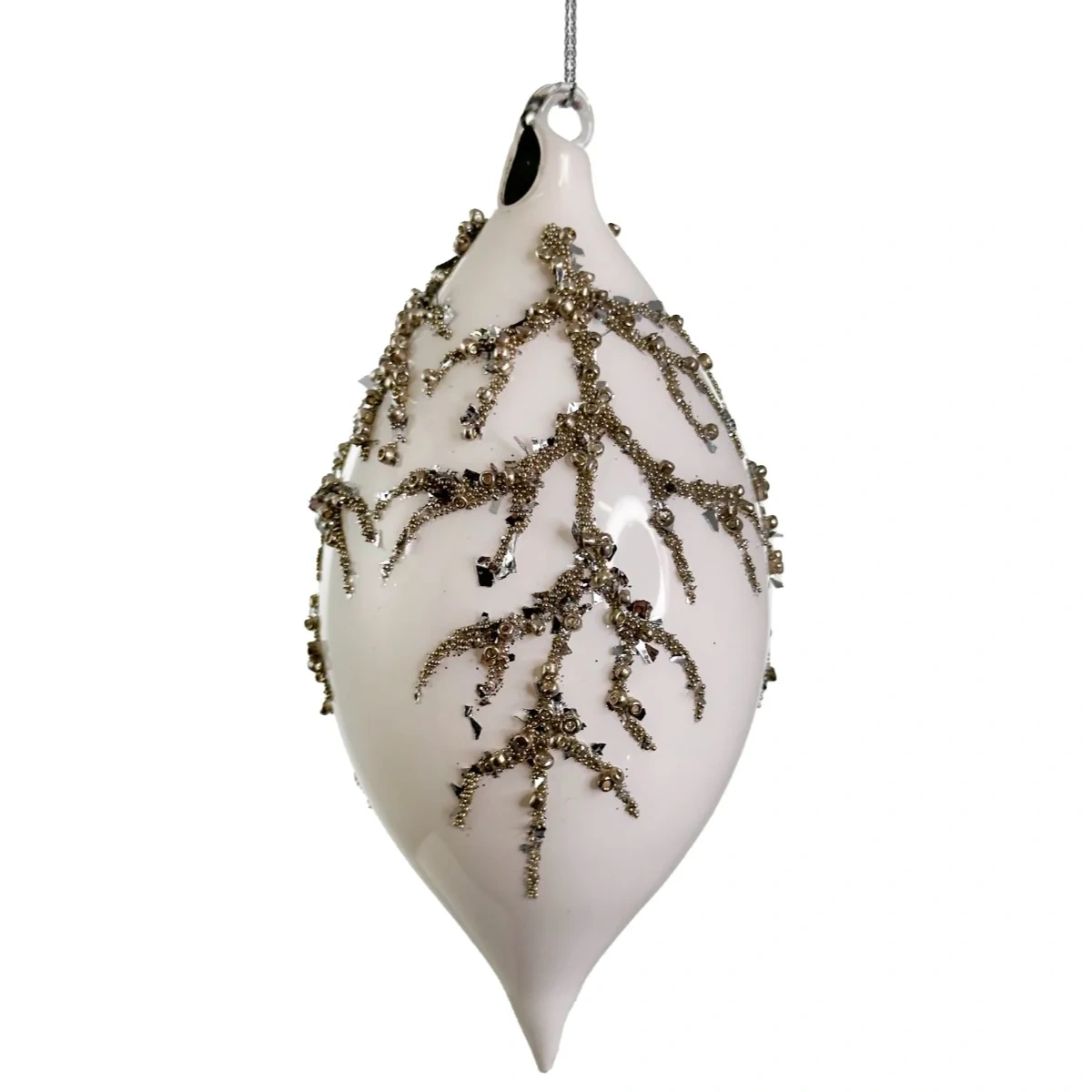Glass Cone Ornament with Shiny Bead (Medium) - White