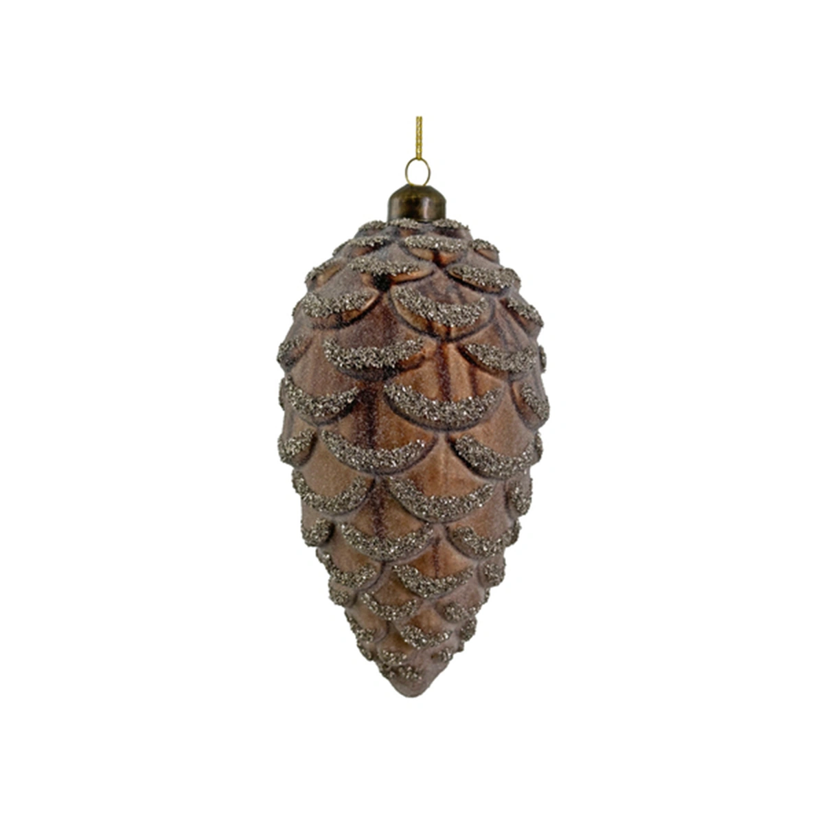 The Glass Cone Sugared Ornament (Large) – Brown Silver creates a balanced frosted highlight. Its soft shimmer and elegant silhouette blend beautifully with cozy seasonal décor.