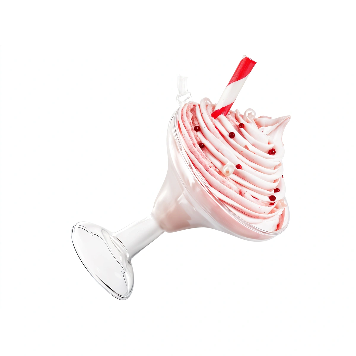 Inject a whimsical touch to your space with the Pink Glass Cream with Straw Ornament. This medium-sized, retro-inspired gem is a delightful addition to any home decor.