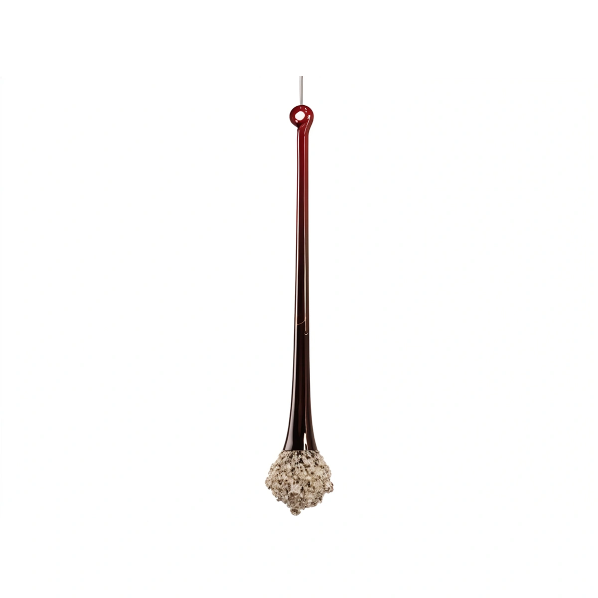 Crafted from premium glass, this ornament showcases a sleek and tapered design, with a length of 15cm that makes it an eye-catching addition. The deep red hue coupled with a hint of silver lends it a luxurious look.