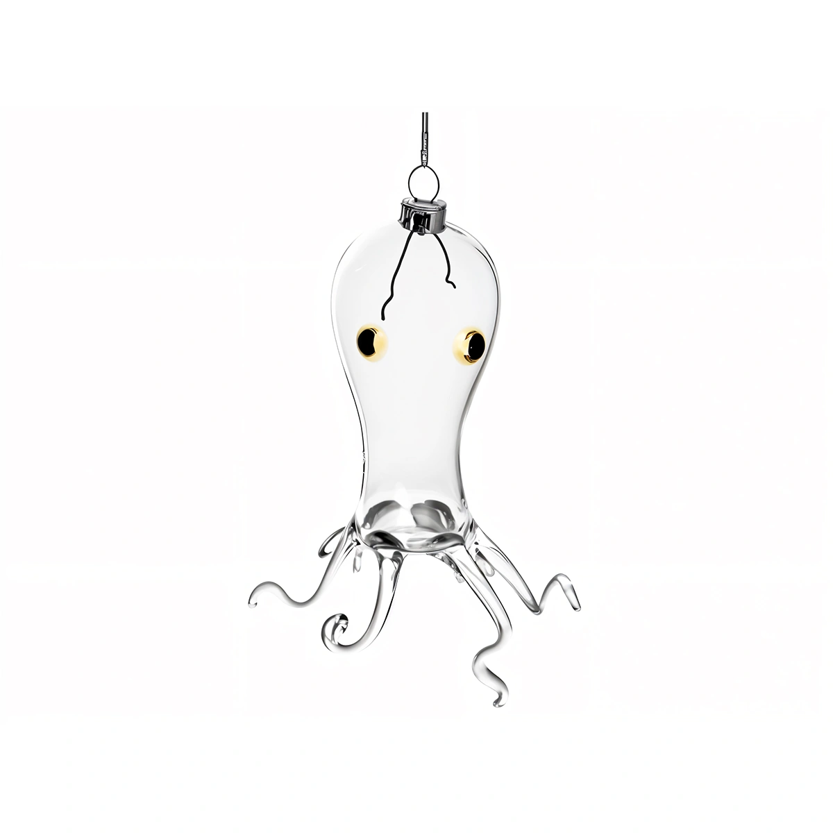 Artfully crafted in transparent glass, this ornament stands at 11.5 cm, boasting a flowing shape and crystal-clear finish that captivates the eye. Its eight tentacles, delicately designed, give it a lifelike quality that's sure to impress.