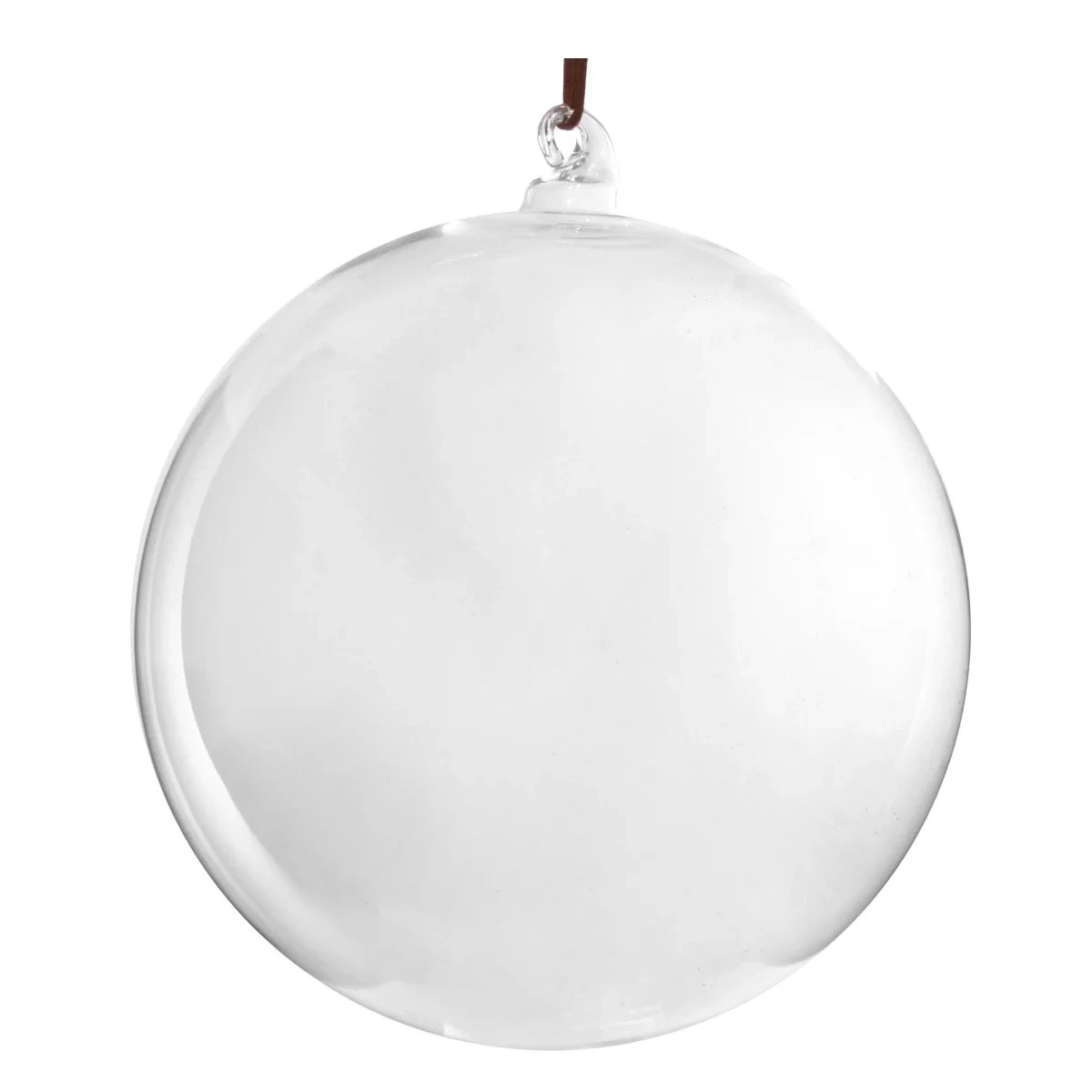 Glass Ornament with Leather Hanger (Large) - Transparent