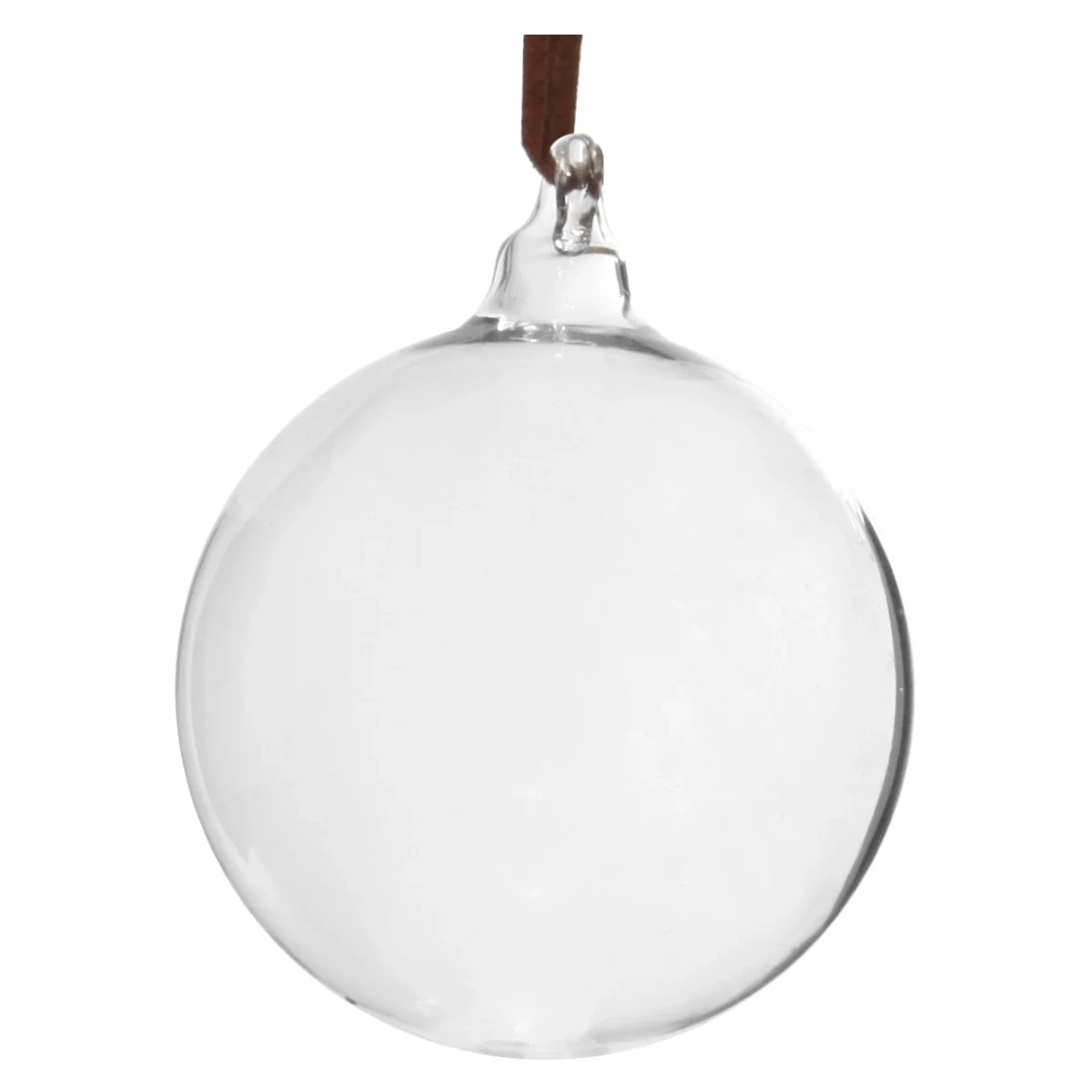 Glass Ornament with Leather Hanger (Mini) - Transparent