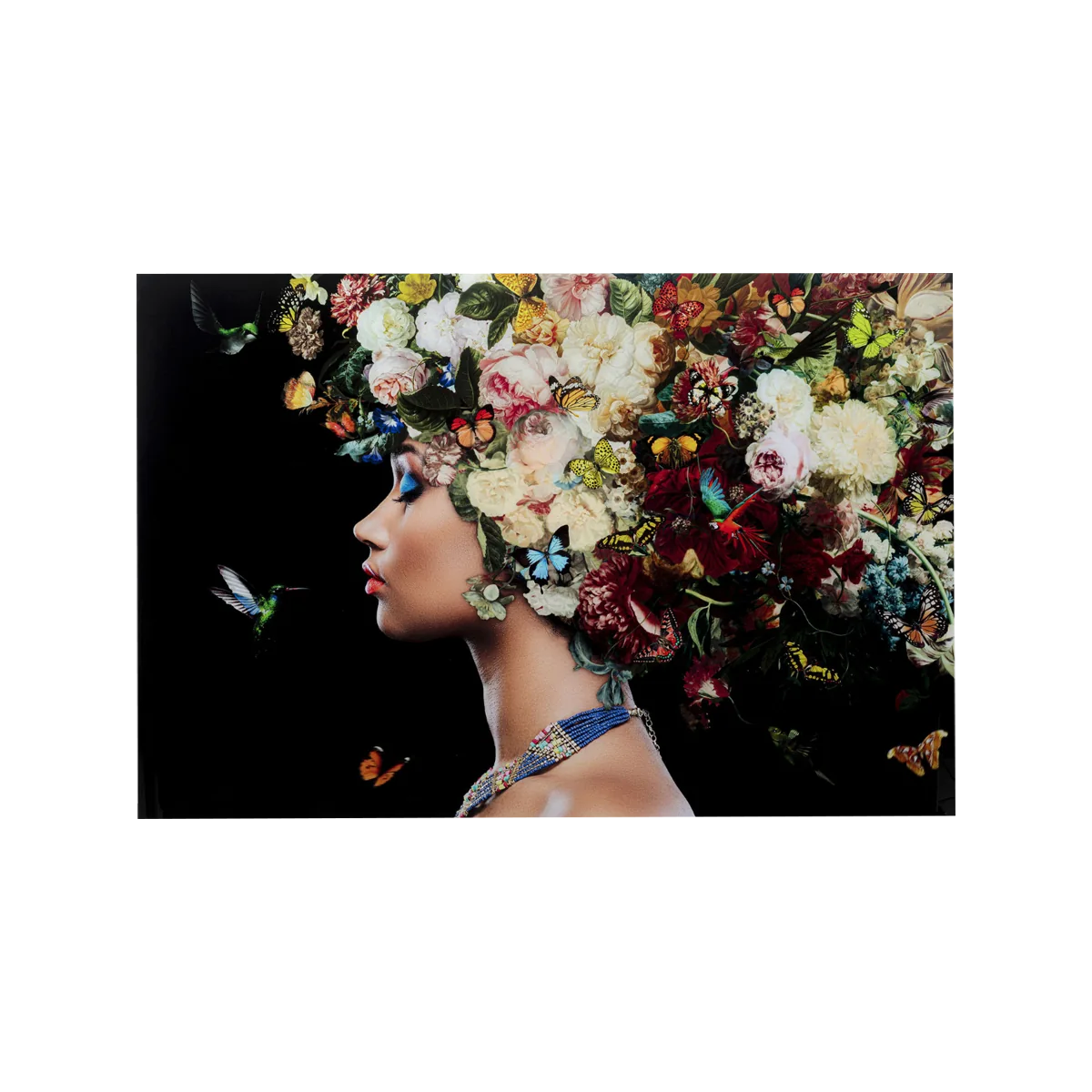 • Large glass picture with flowers, butterflies, birds and a portrait