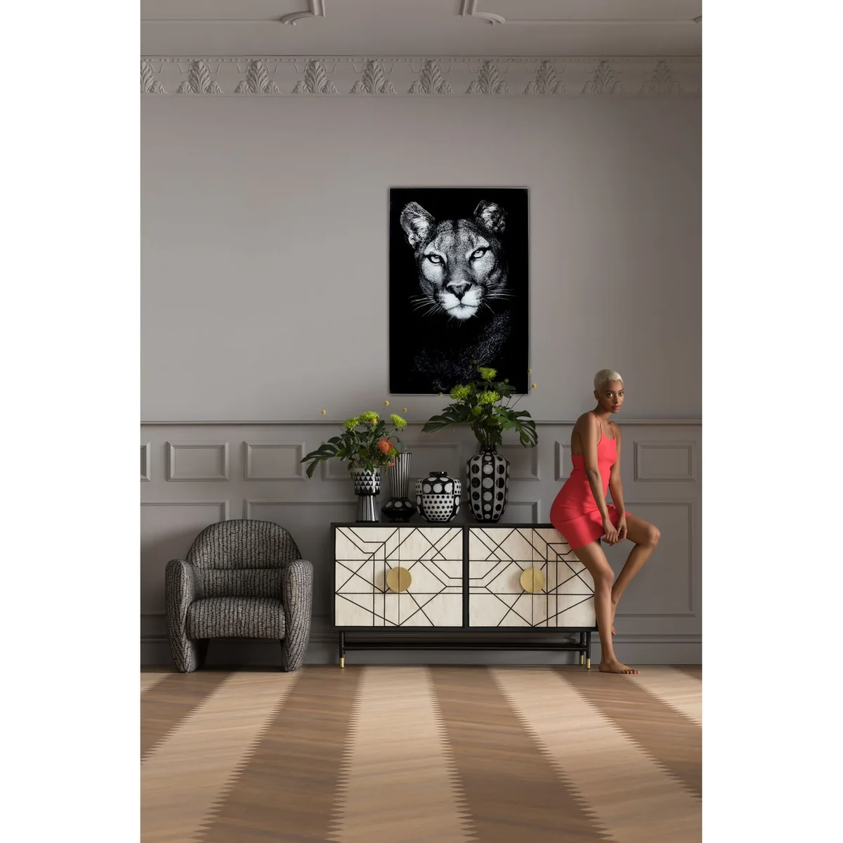 An image for both feline and animal lovers. The striking gaze of this majestc cat is hard to ignore. Find the best spot to hand this interesting black and white image.
