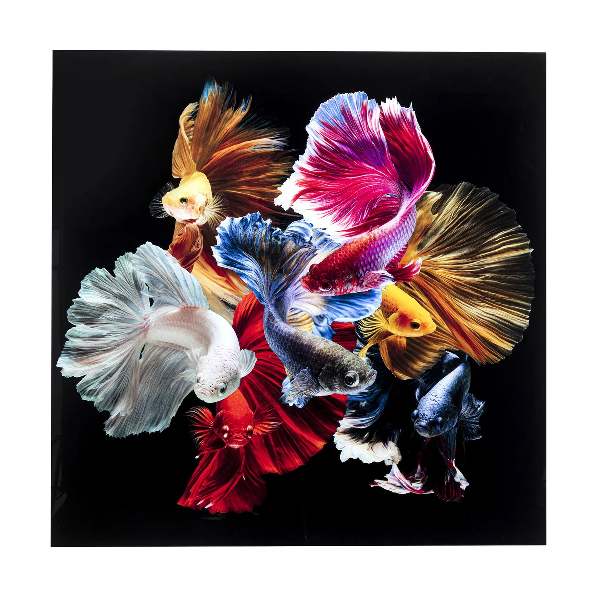- Glass picture with fascinating depth effect and bright colours - Photo art with a fish motif that also unfolds its full effect on large walls - High-quality picture print with brilliant sharpness and vibrant colours - Frameless, in large format and square - this is modern wall decoration at its best - Motif mounted behind safety glass, stainless steel hooks included for easy hanging on the wall