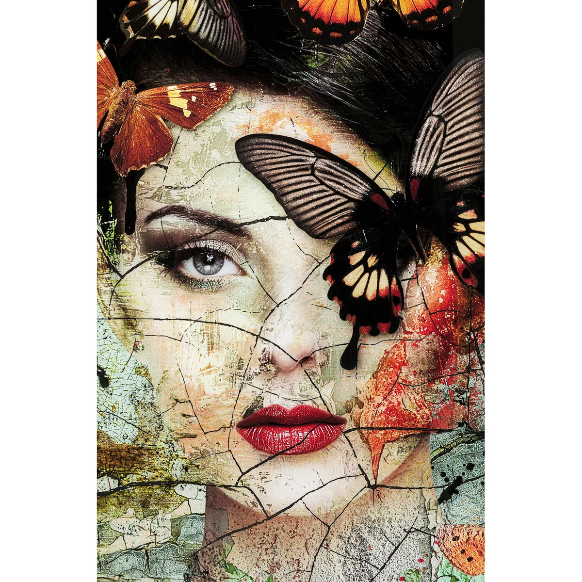 Introducing the Multicolor Lady Butterfly Glass Picture, a captivating piece for any home. Its vibrant colors and striking design are sure to draw attention in any room.