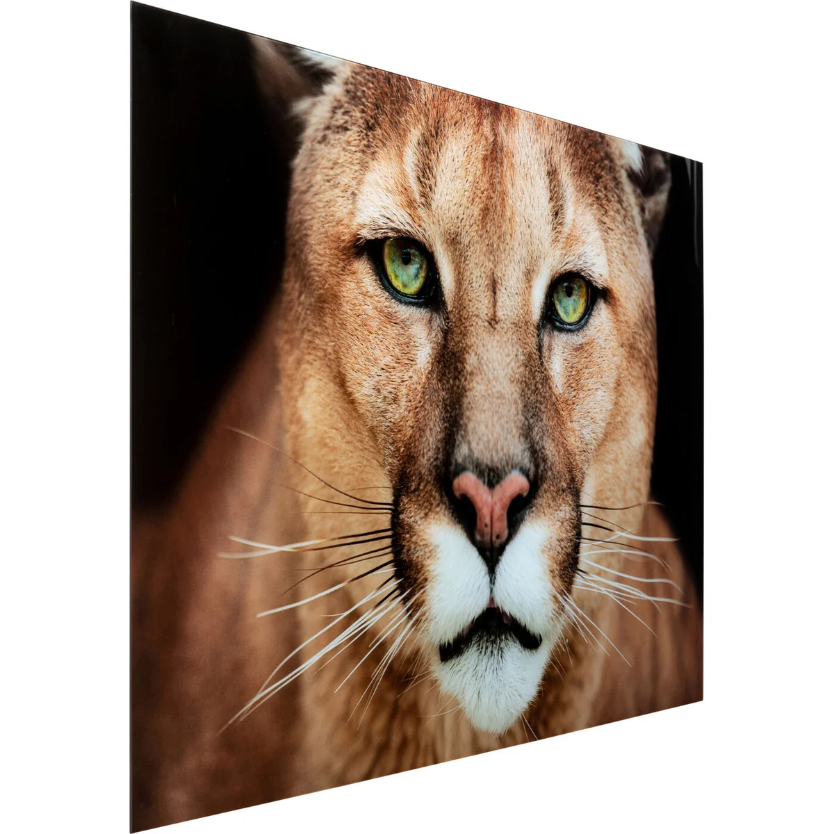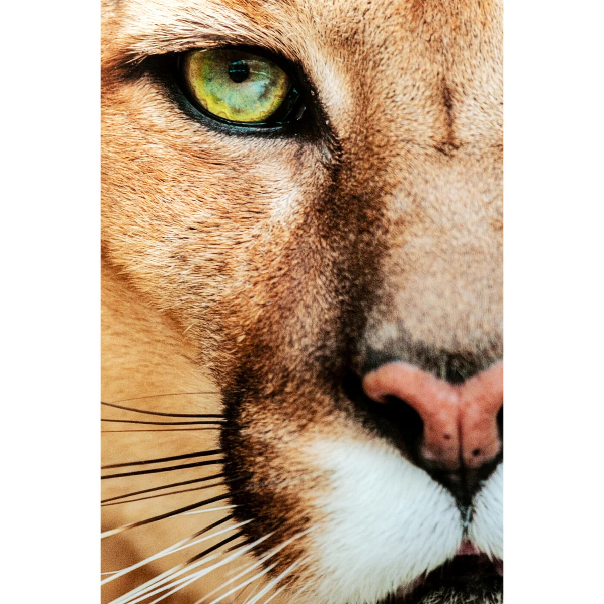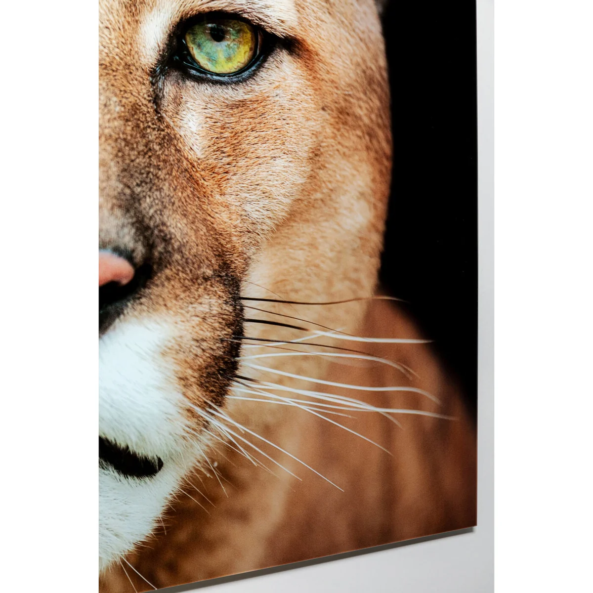 You'll probably never get this close to a lioness again! The majestic animal looks straight at you. Thanks to the crystal-clear quality and its imposing size of 150x100cm, this picture behind glass is an absolute eye-catcher. The picture comes into its own perfectly with black or plain-coloured furniture. Whether above the sofa in the living room, in the hallway, above the bed in the bedroom or in the office to provide motivation - the wall decoration adds that certain something to any room. This large picture behind glass is hung horizontally and looks magnificent above the sideboard, sofa or dresser table.