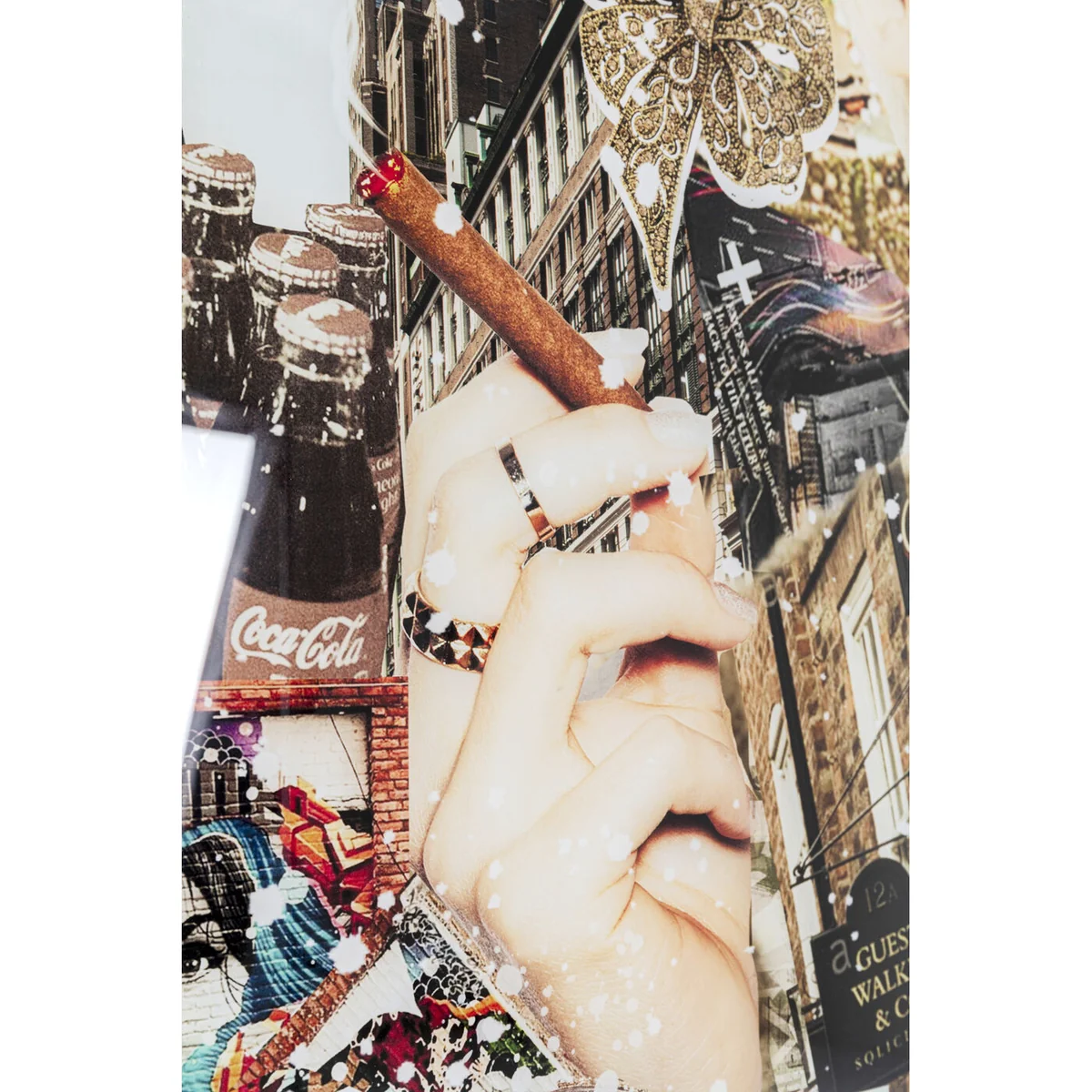 - A large, colourful, portrait-format picture for the wall in the style of a collage - Frameless picture motif on easy-care toughened safety glass - This image gives every home a distinctive style - It will transform a bare wall into an eye-catcher in one swift stroke - Top tip from the stylists: XL-format pictures visually open up rooms like a large window