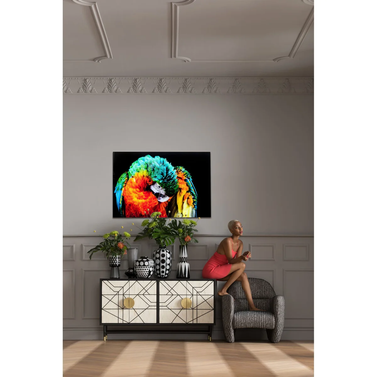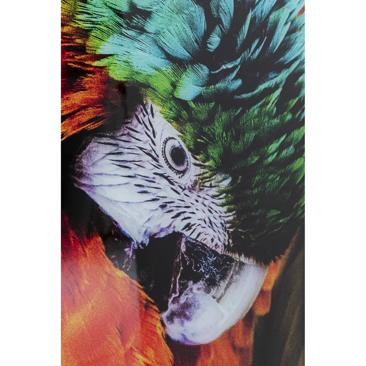 - A stylish wall picture in the XL landscape format with the dimensions of 120 x 80 cm - An exotic motif with a picture-perfect macaw in real brilliance - The photo is laminated behind 4 mm thick toughened safety glass - Easy to hang thanks to the included, solid brackets - Brings colour to any modern interior style