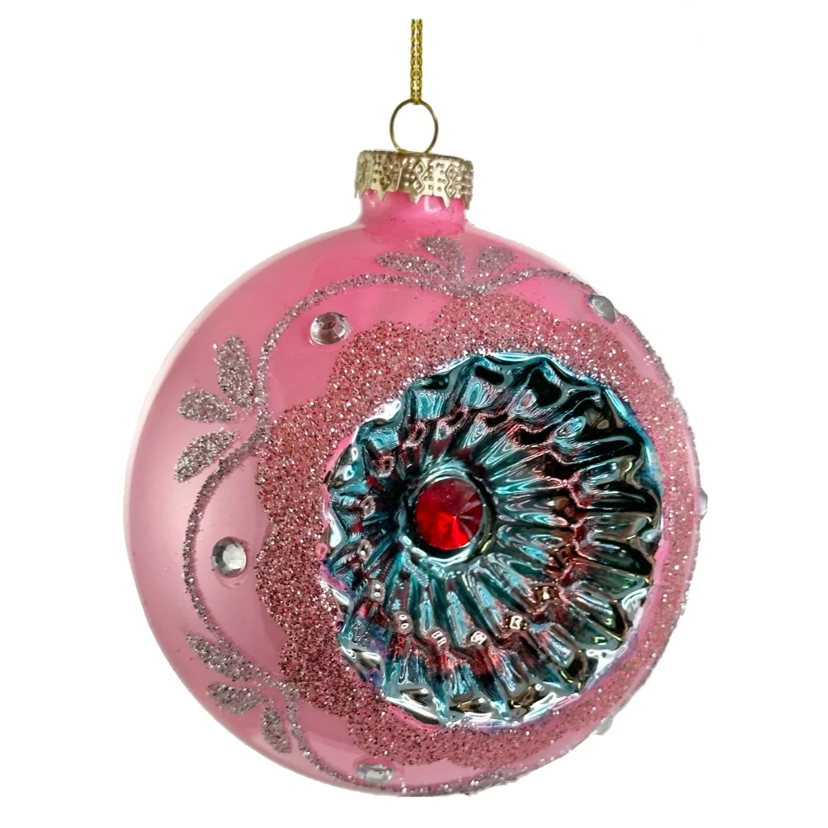 Glass Shiny Ball with Pressed Ornament (Small) - Pink