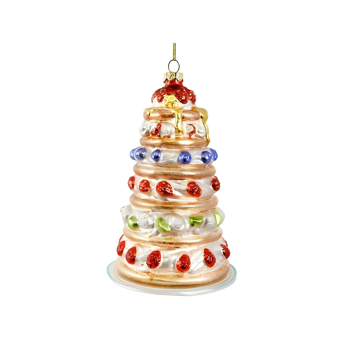 Introducing the Multicolor Glass Strawberry Cake Ornament, a delightful addition to any decorative collection.