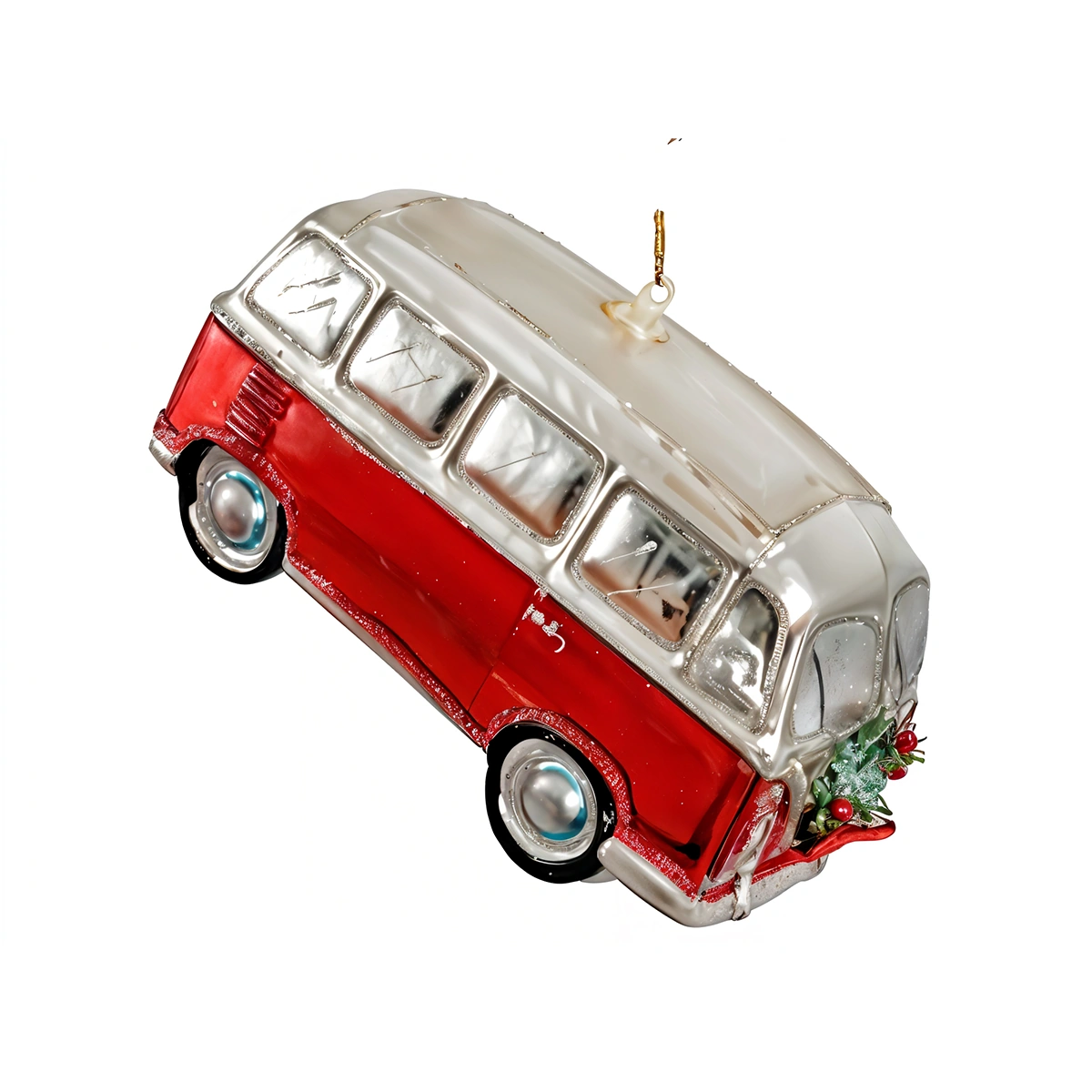 The Glass Van Ornament in Red captures the fun spirit of travel and nostalgia. With its glossy finish and cheerful tone, it’s a playful reminder of carefree adventures and joyful memories. Whether hung on your holiday tree or displayed as a whimsical accent, it instantly adds a touch of personality and color to your décor.