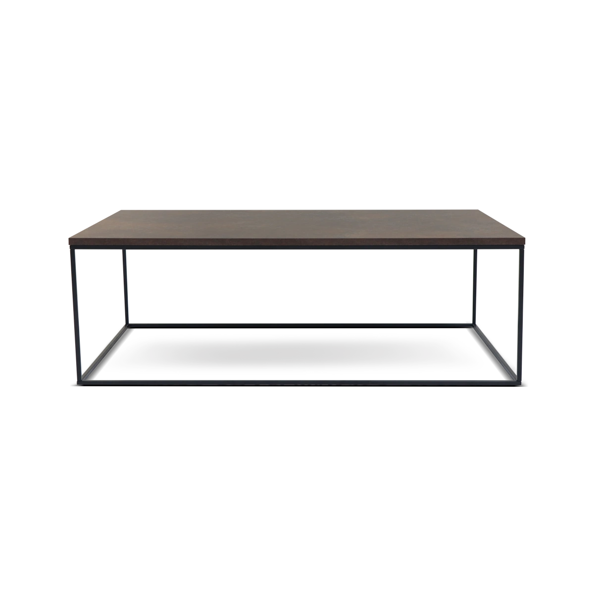 The Gleam Kit Coffee Table combines a rusty, industrial finish with a bold black frame, creating a rugged yet stylish design. Ideal for urban or loft-inspired interiors, it serves as a statement piece while offering functional surface space.