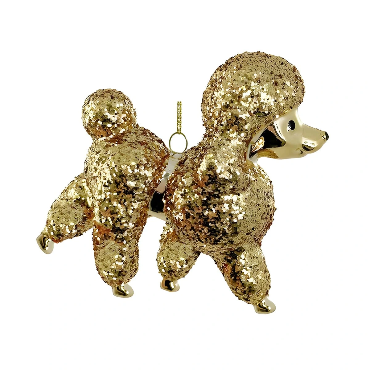 Add a touch of whimsy and sparkle to your décor with our Small Gold Plastic Glitter Poodle Ornament, a radiant addition that brings personality to any space.