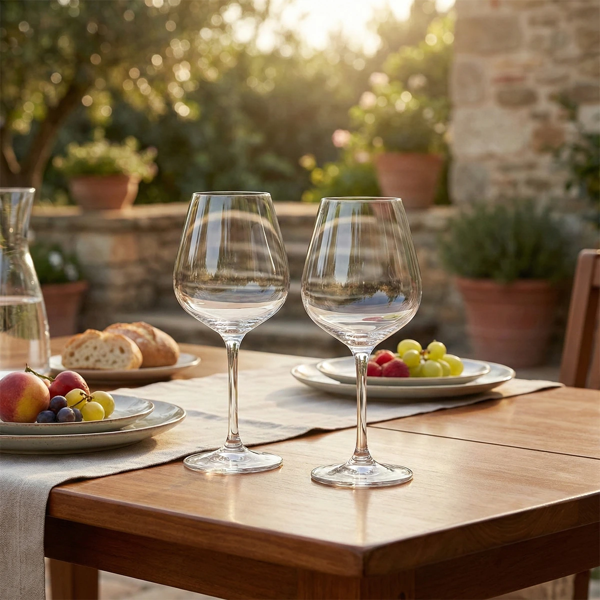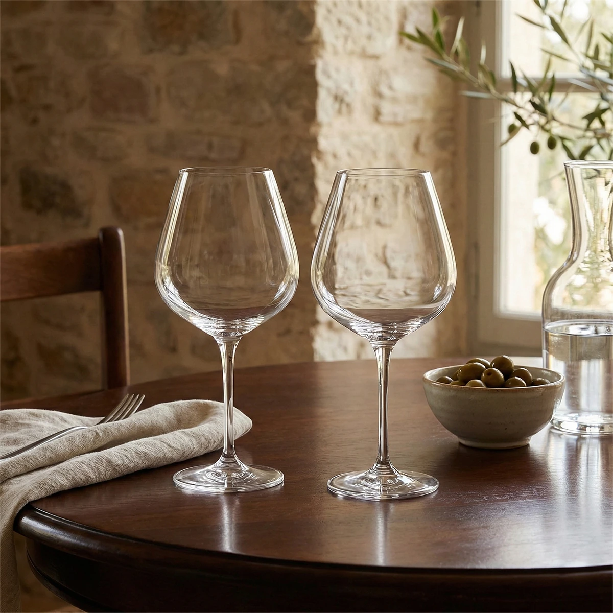 The Grape Modern Stem Glass Set in clear offers a contemporary approach to everyday table style. Designed for modern homes, this crystal glass set features clean lines and a balanced profile that fits seamlessly into minimalist and design-led interiors. Crafted from crystal glass, each piece showcases a refined bowl shape and smooth stem with a clear, polished finish. The construction provides stability and durability, while the modern silhouette enhances visual appeal across a wide range of table settings. This set brings modern sophistication to daily use. Durable and versatile, it adds style to family meals and relaxed entertaining alike.