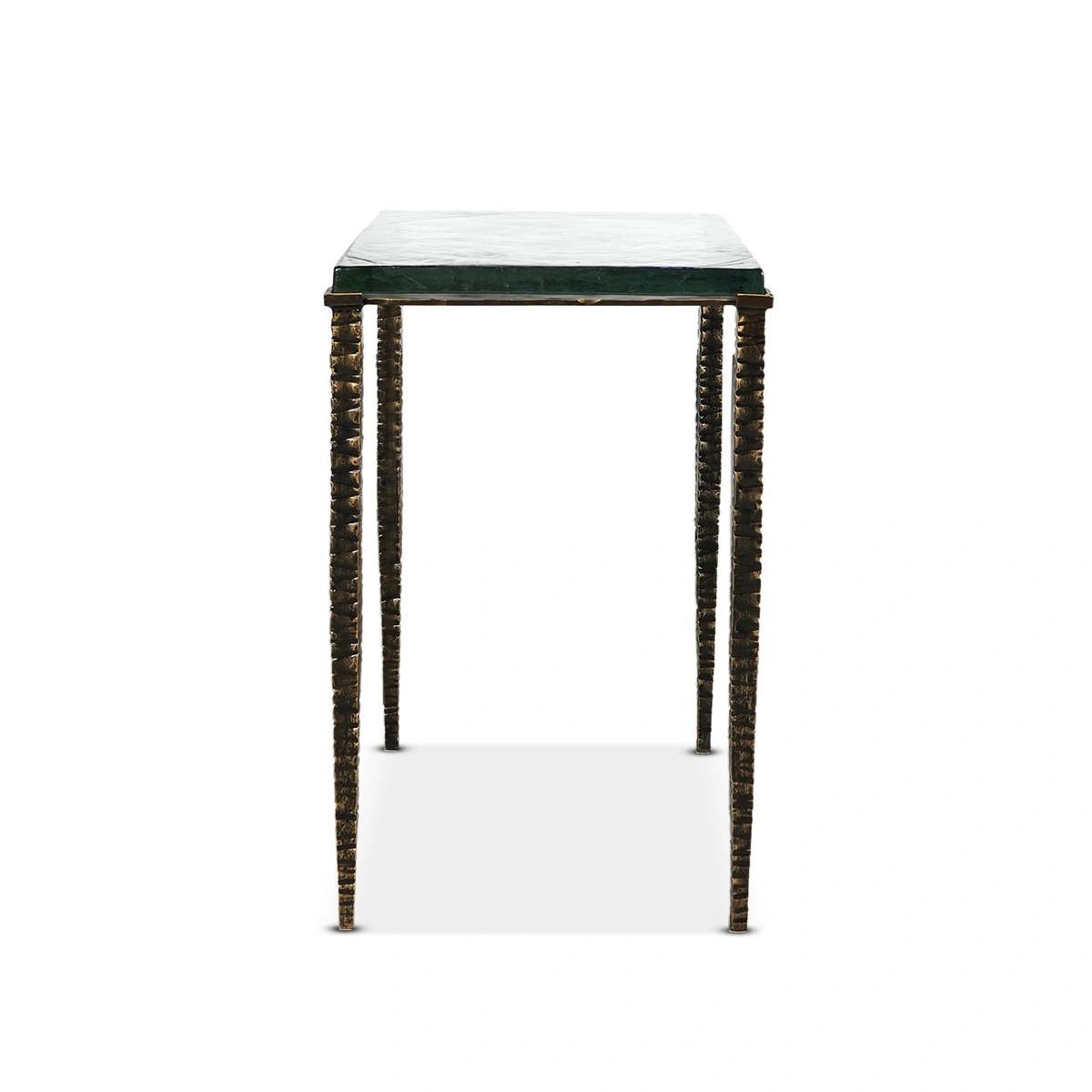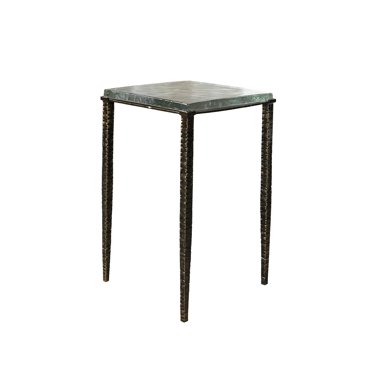 Small Hammered Metal Square End Table in Brown Iron and Glass