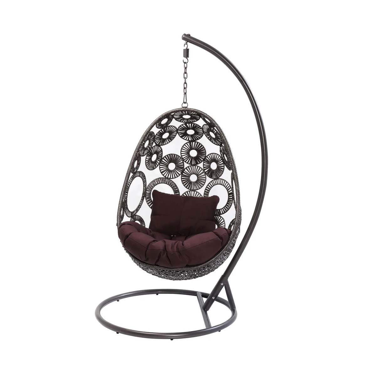 Enjoy the ultimate relaxation with the Ibiza Hanging Chair in Brown Steel Powder-Coated. This contemporary piece adds a touch of elegance to any living space.