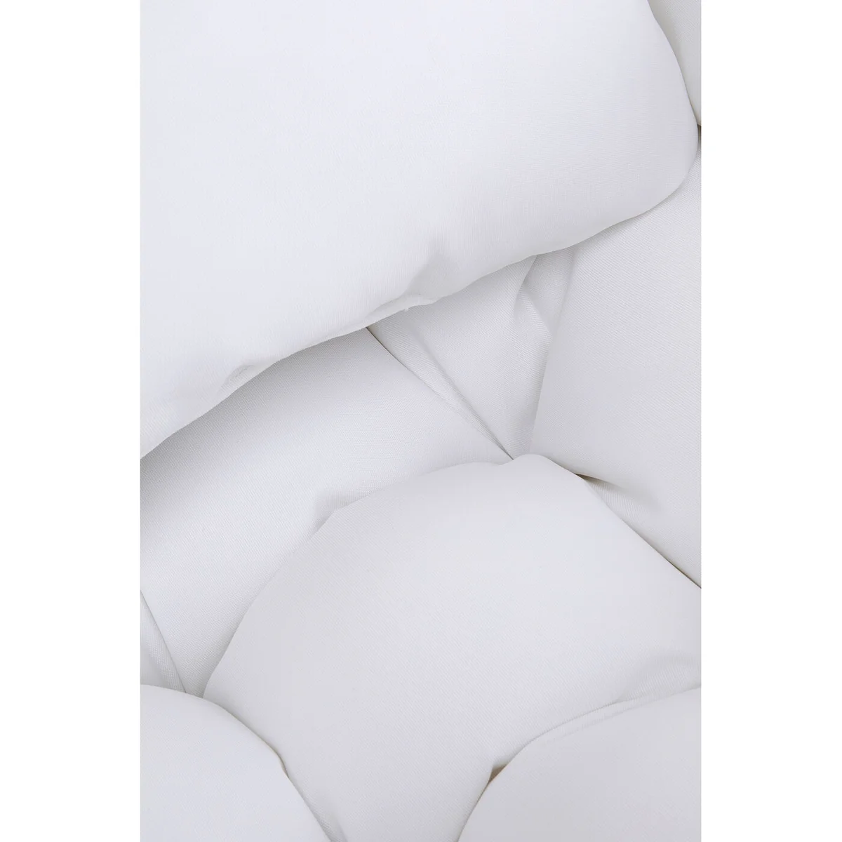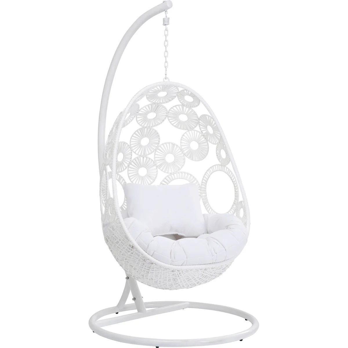 • Cool, white boho-style hanging chair that even indoors can compete with any living room sofa • The wickerwork body made of polyrattan with a playful perforated pattern floats visually on the patio and balcony • This is how Ibiza feeling enters the flat even in foul weather • A lifestyle piece of furniture that lifts the mood: rocking is always relaxation therapy • The wickerwork hanging armchair is even cosier with colourful patterned cushions in a hippie look